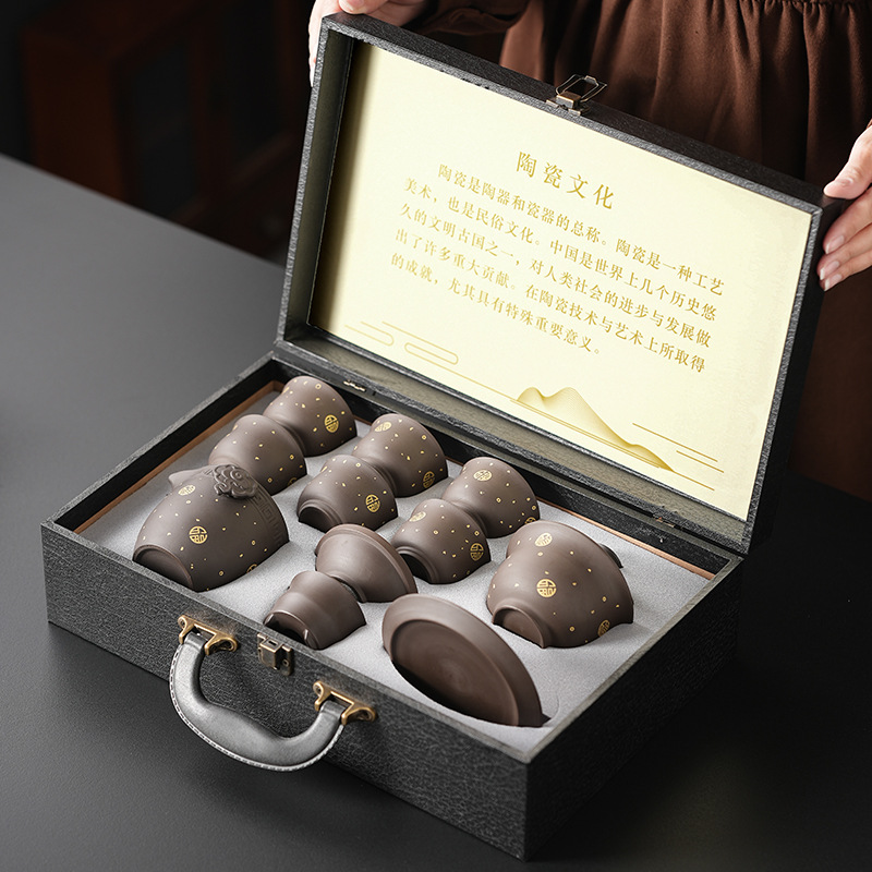 紫砂工夫茶器セット家庭用陶磁器ティーポット蓋セット高級ギフトボックスビジネスお土産