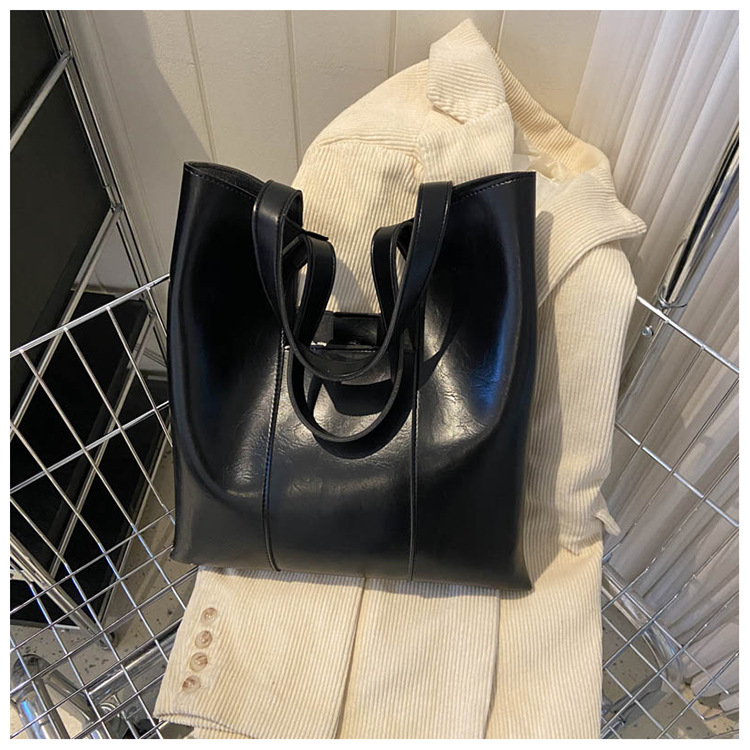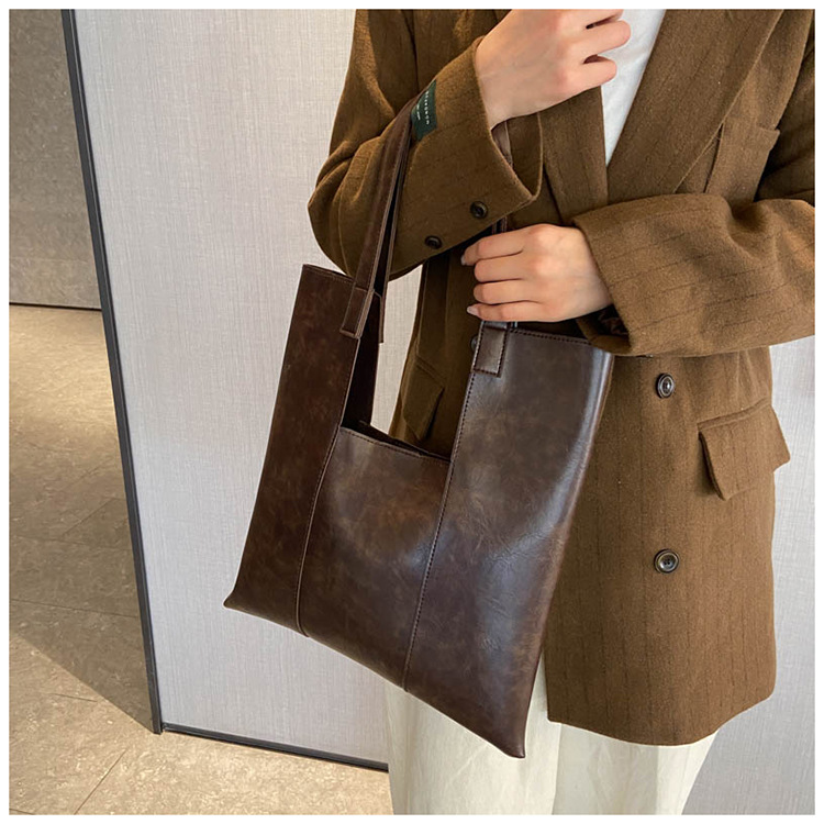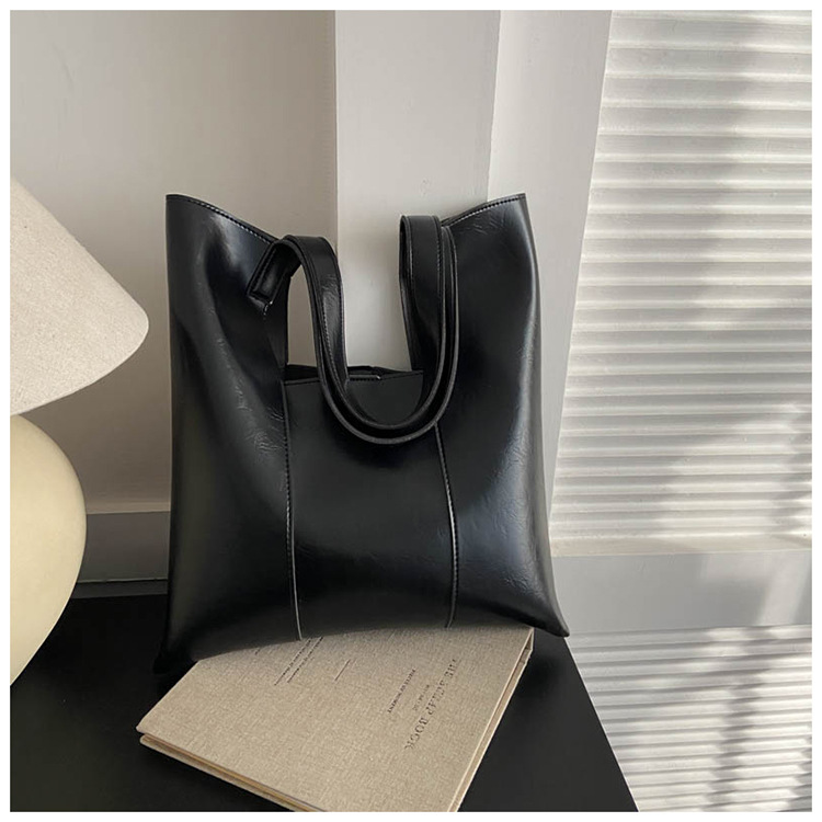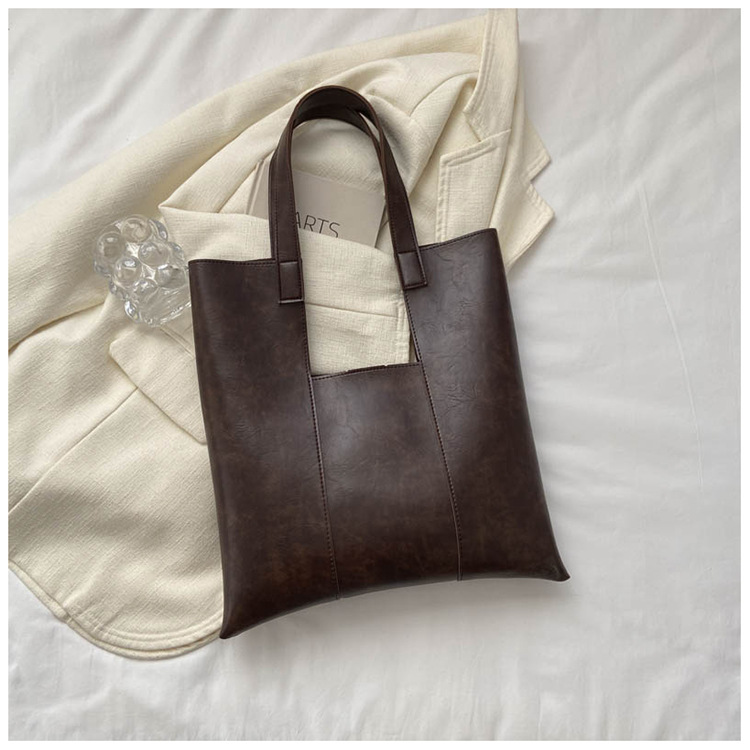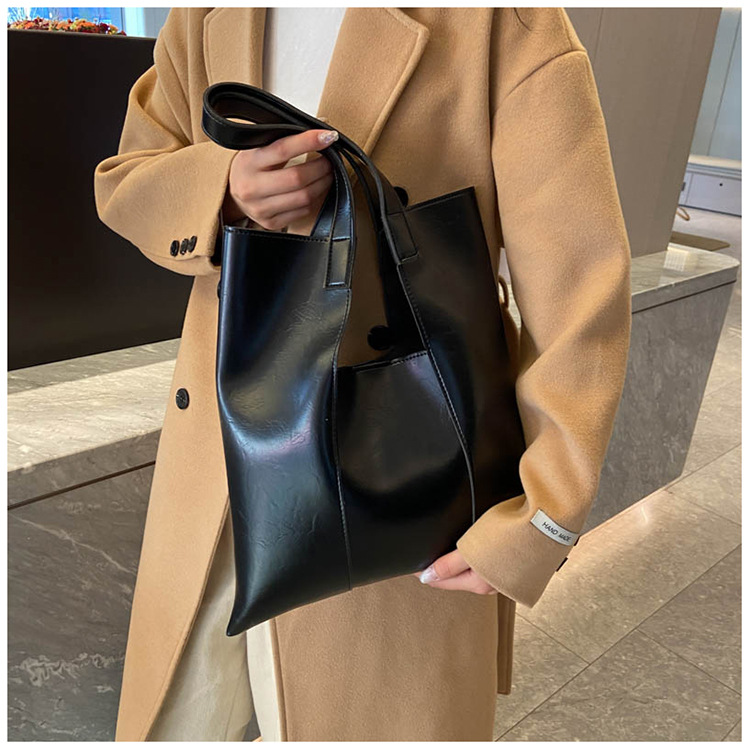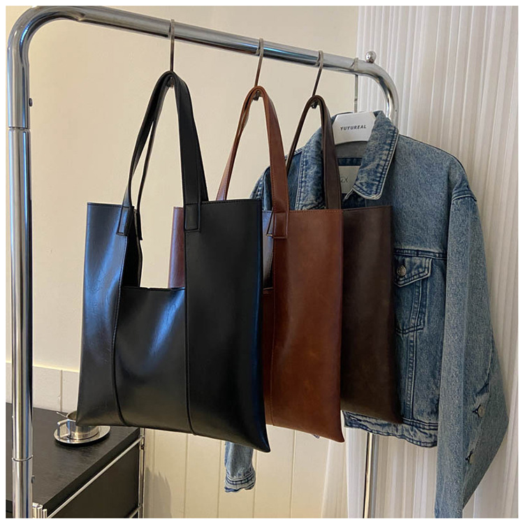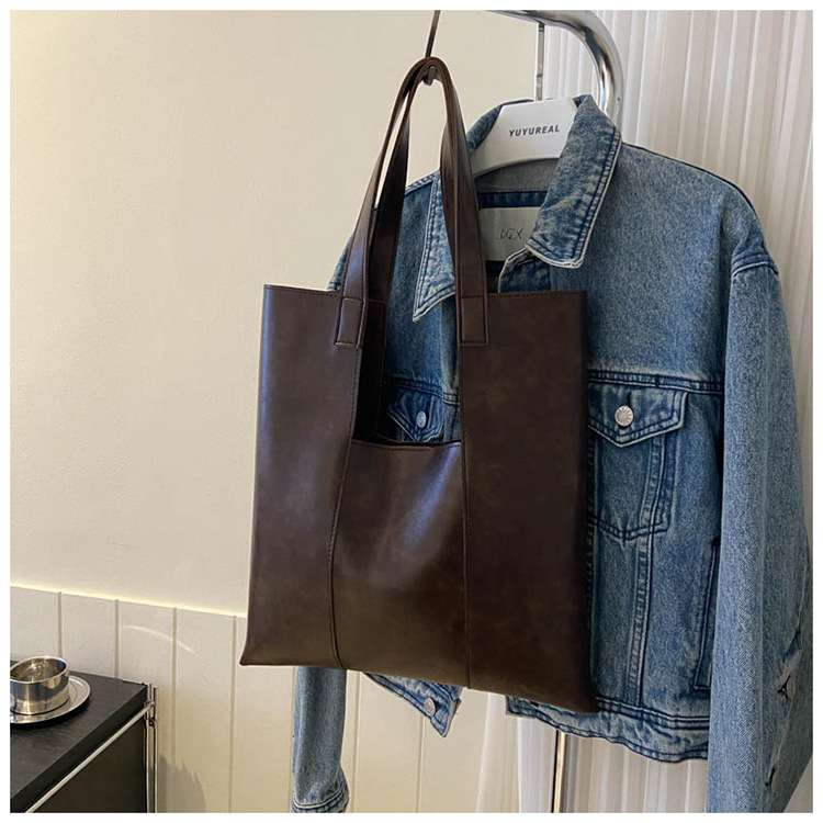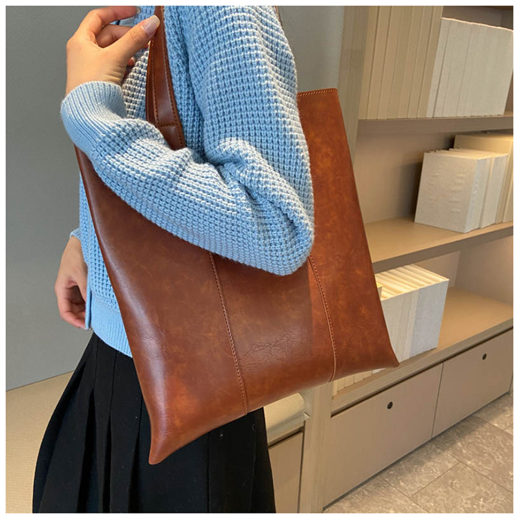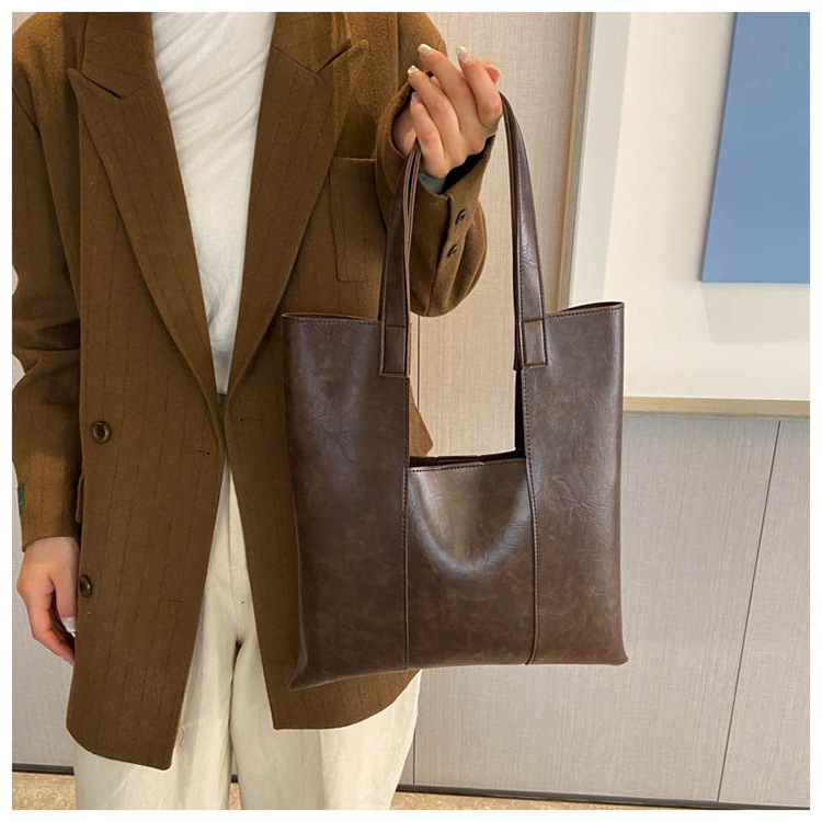 ヨーロッパとアメリカのレトロな大容量トートバッグ 2025 新しい質感ソリッドカラーショルダーレディースバッグソフトレザー通勤バッグ