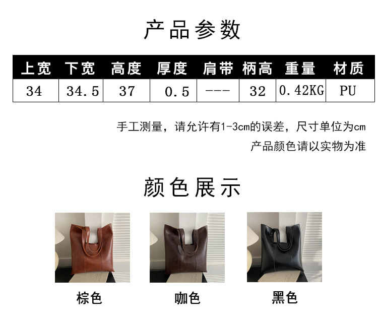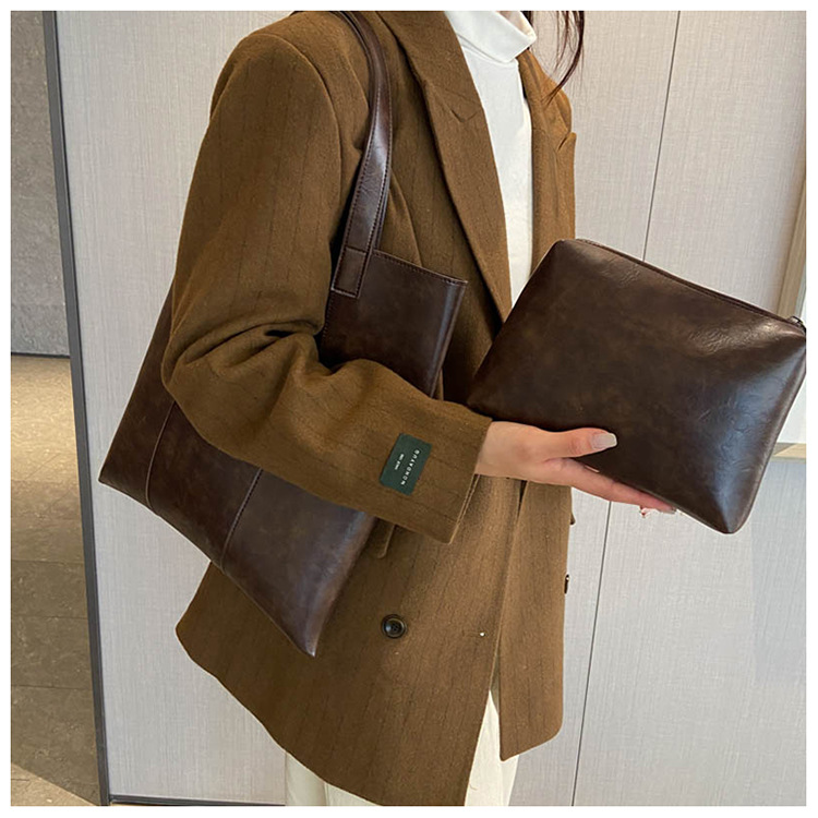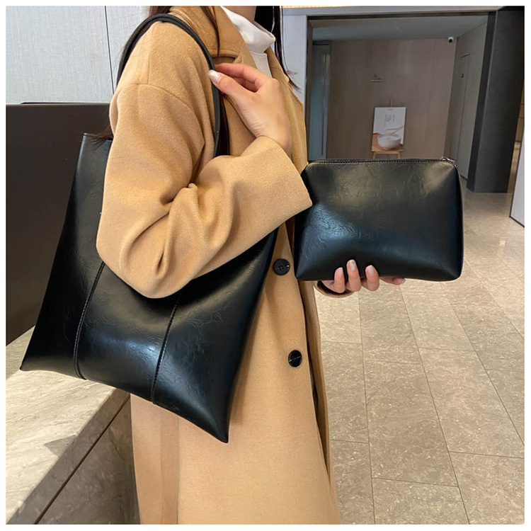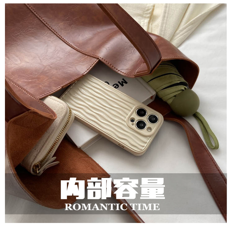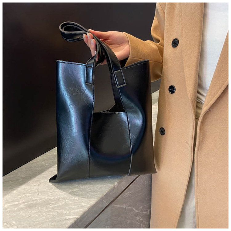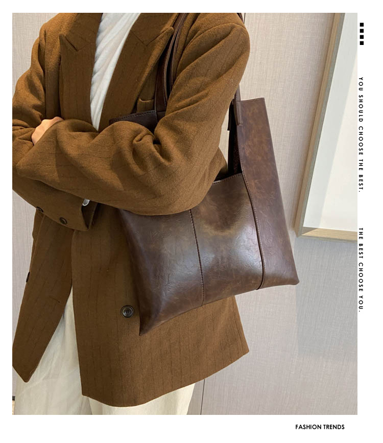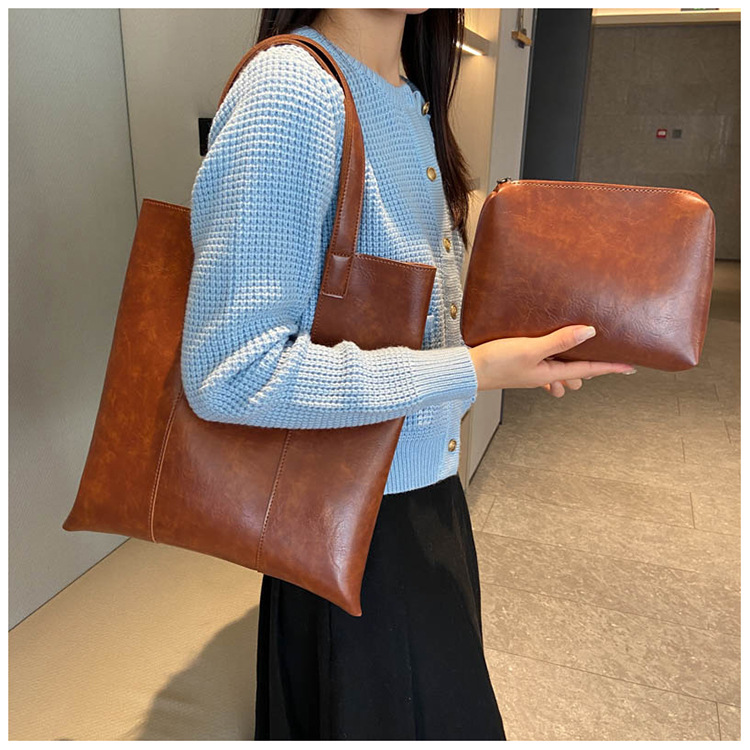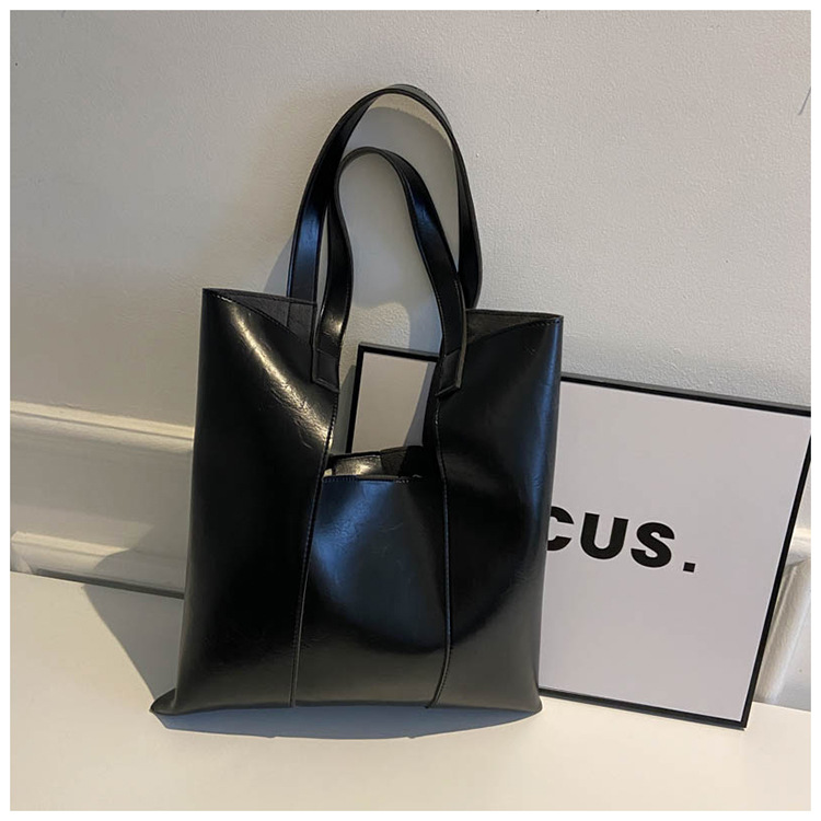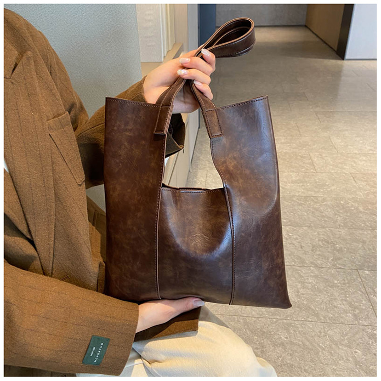 ヨーロッパとアメリカのレトロな大容量トートバッグ 2025 新しい質感ソリッドカラーショルダーレディースバッグソフトレザー通勤バッグ