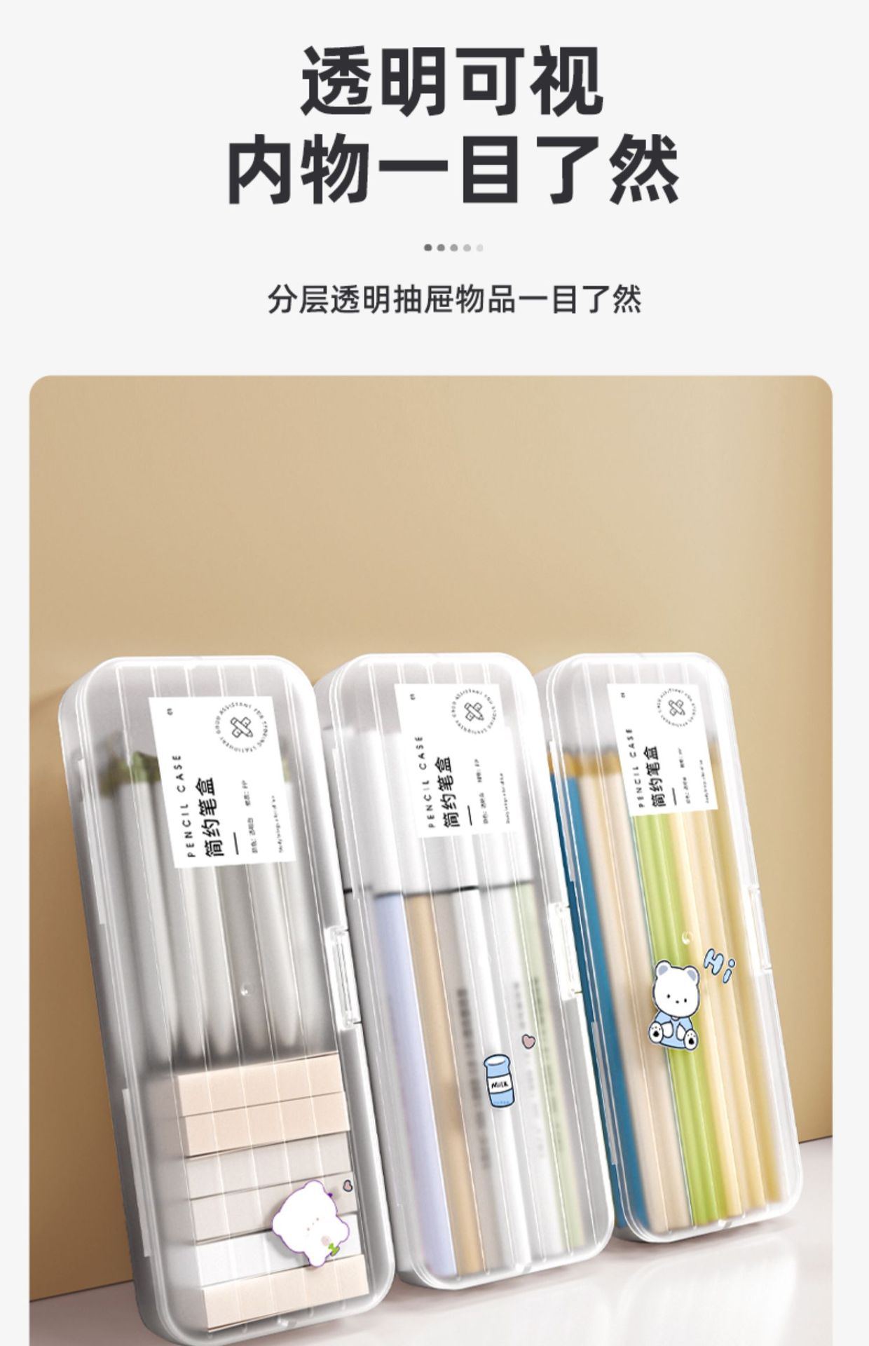 大容量透明ペンケースシンプル可爱い中学生高颜値文房具ケース铅笔ケース多机能収纳ペンケース