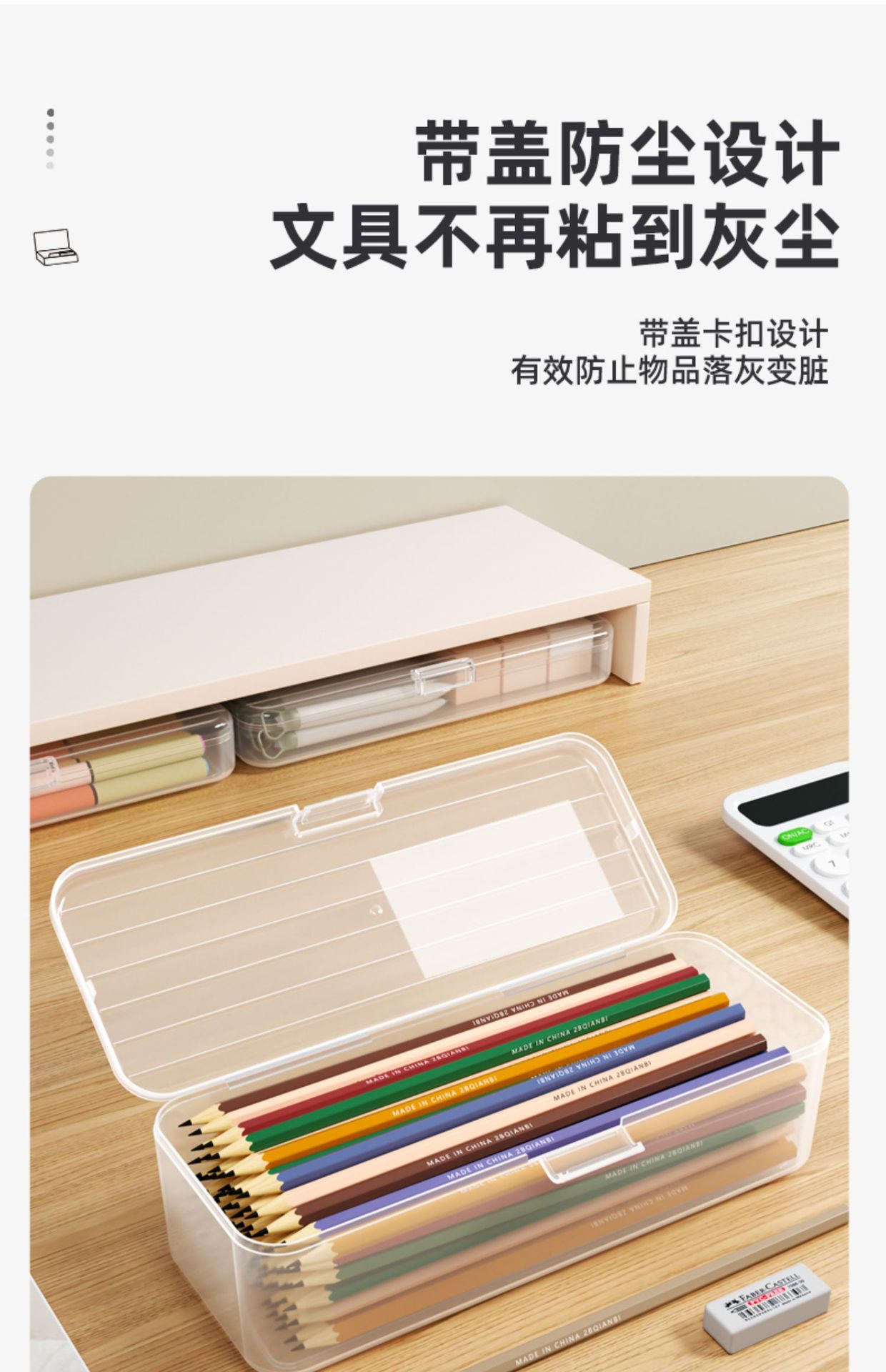 プラスチック透明収納ボックスシンプル学生試験鉛筆ボックスデスクトップ多機能大容量文房具ボックス