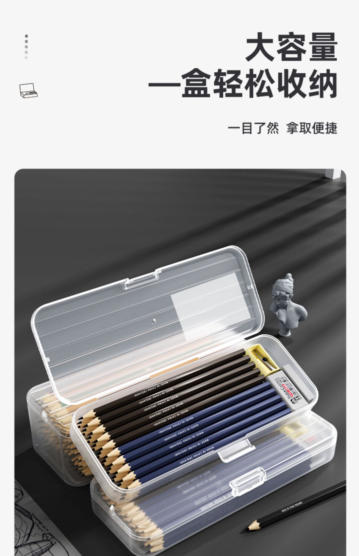 大容量文房具透明プラスチックボックス学生絵筆スケッチペン鉛筆ボックス文房具ボックス重ね収納ボックス