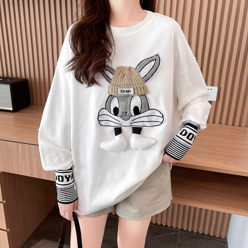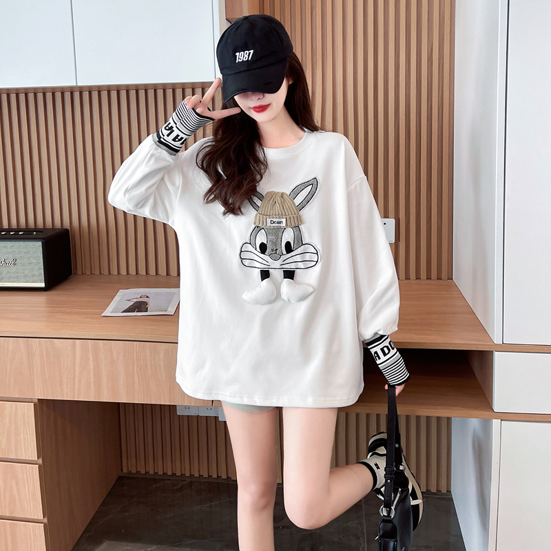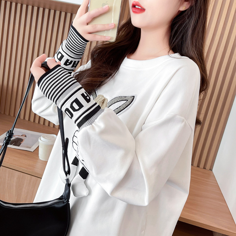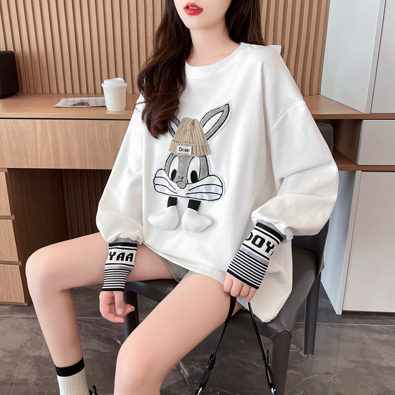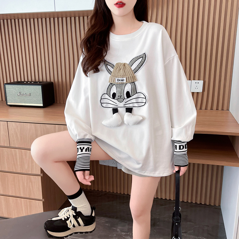 クロスボーダーtシャツの女性保温丸首長袖アニメのゆったりした大きいサイズの厚い偽の2つのボトムの女性