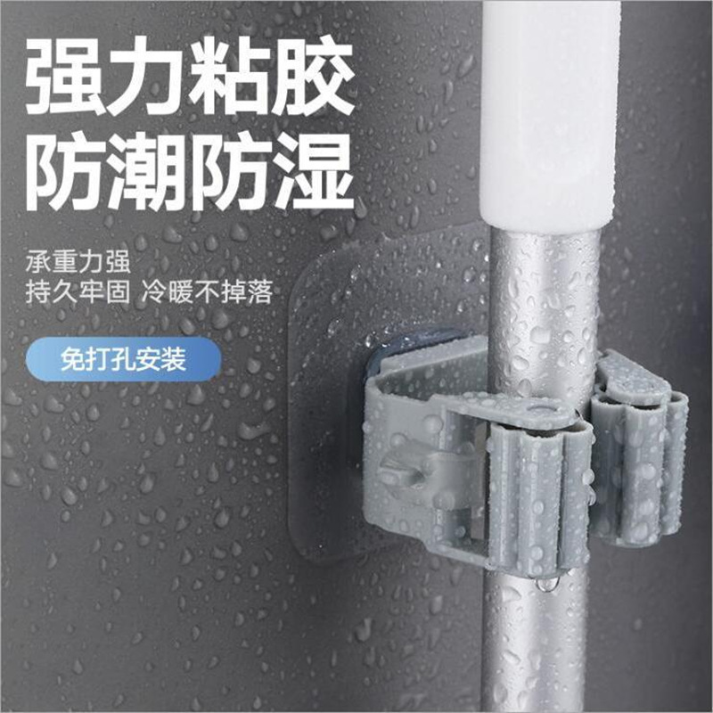穴あけ不要のモップフック、強力な粘着壁掛け家庭用跡のない収納モップクリップ、浴室用モップラック