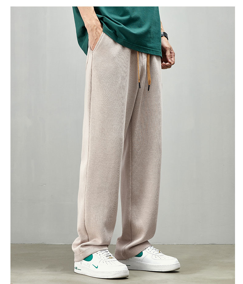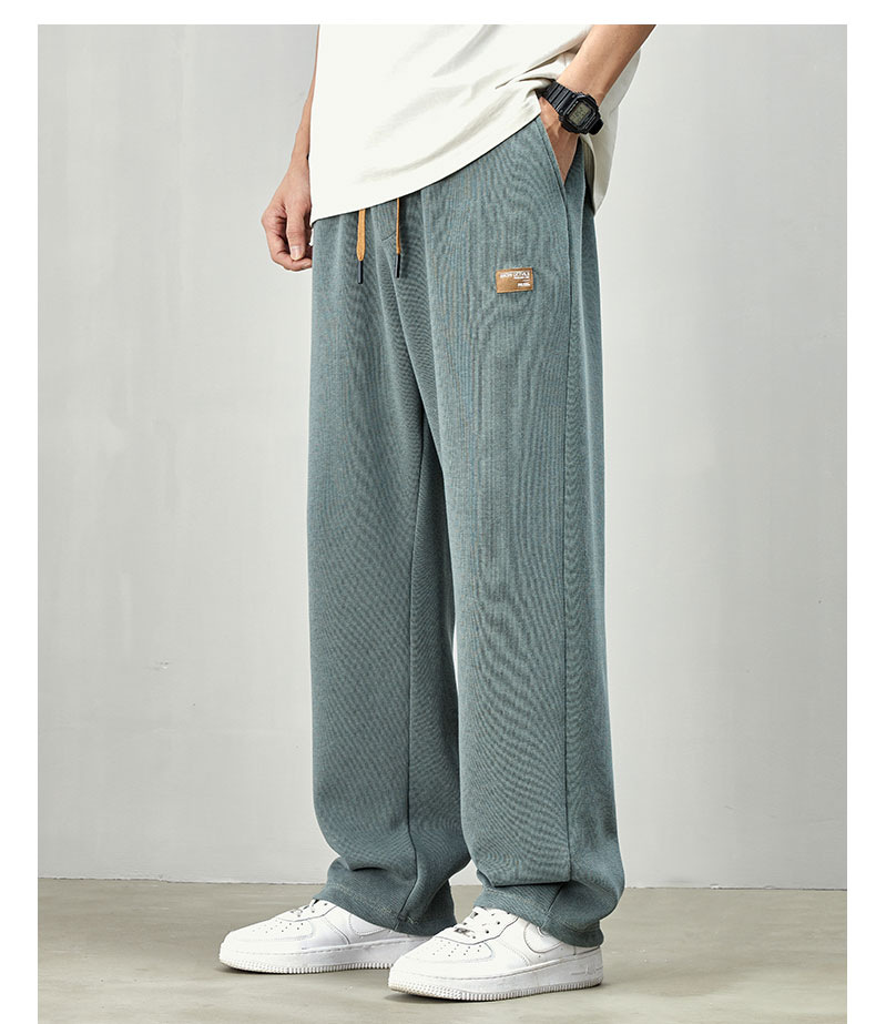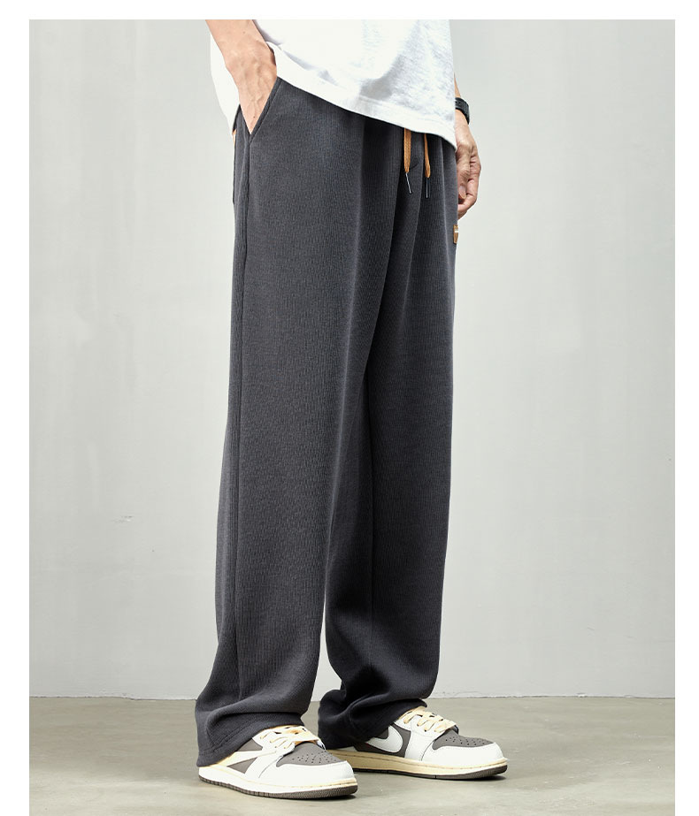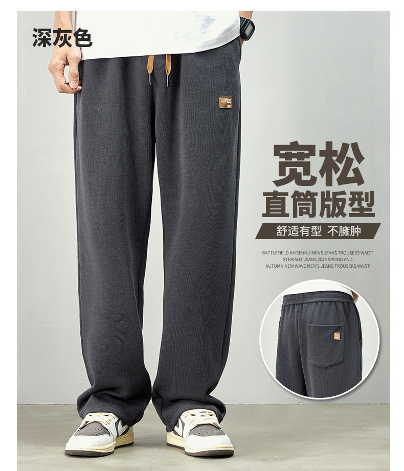 ひも引き運動衛ズボン男性百合純色立体裁断ゆったりとした快適な大きいサイズのカジュアルズボン垂直感ストレート