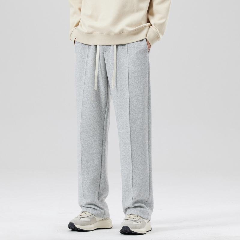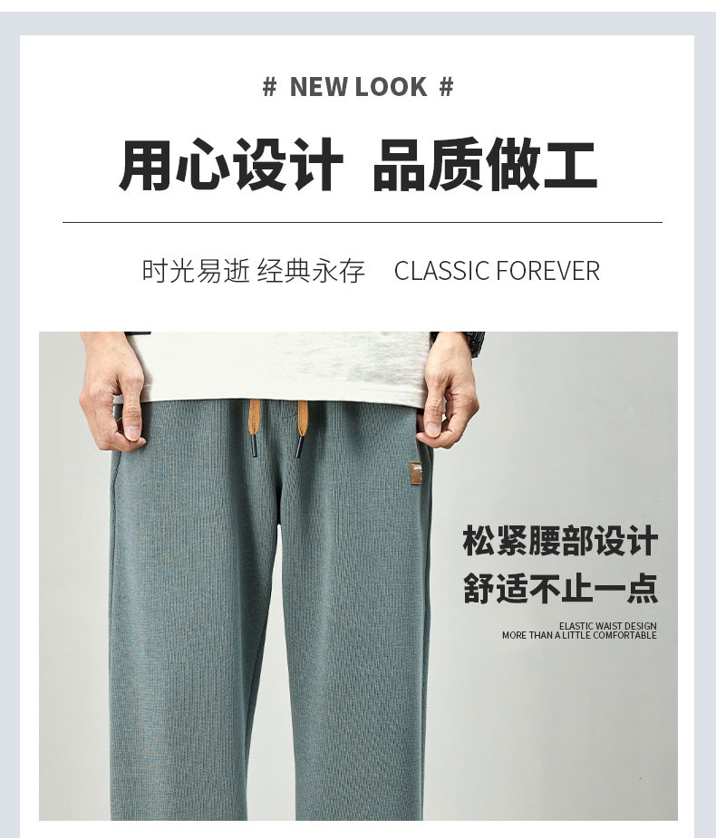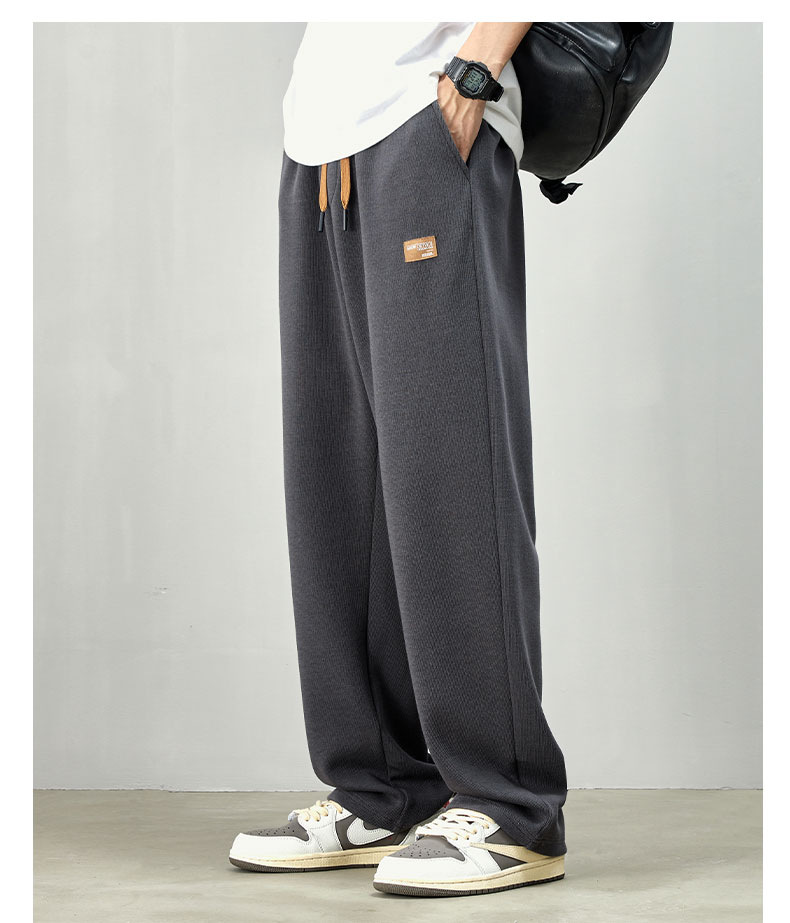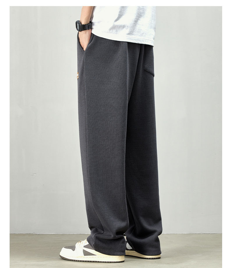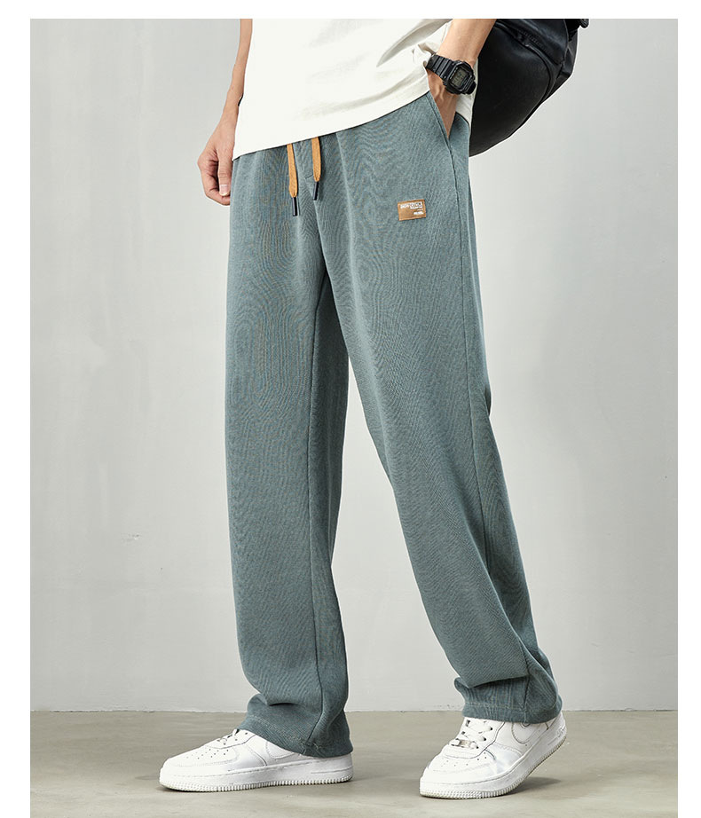 ひも引き運動衛ズボン男性百合純色立体裁断ゆったりとした快適な大きいサイズのカジュアルズボン垂直感ストレート