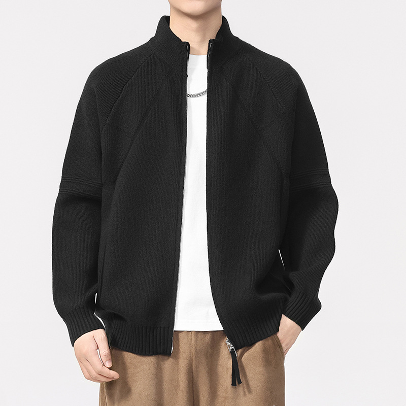 秋冬季微宽松针织开衫外套男生户外通勤高级感轻奢毛衣立领上衣男