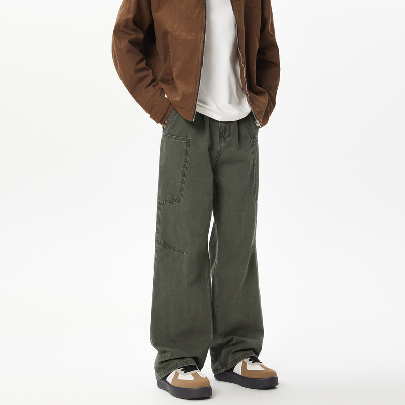 純綿の多ポケット機能のジーパンの男性式の復古の潮のブランドの高い街は洗って古いズボンの男性の2024秋冬をします。
