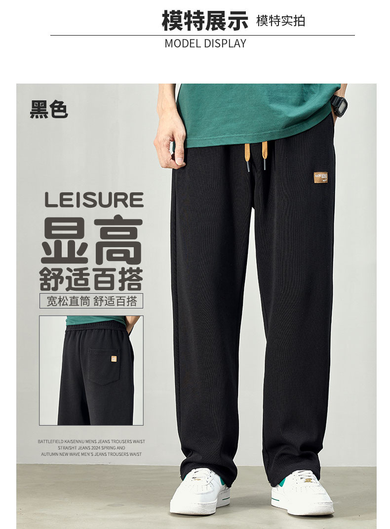 青少年百搭流行复古直筒休闲裤男抽绳款户外通勤垂感舒适长裤秋冬