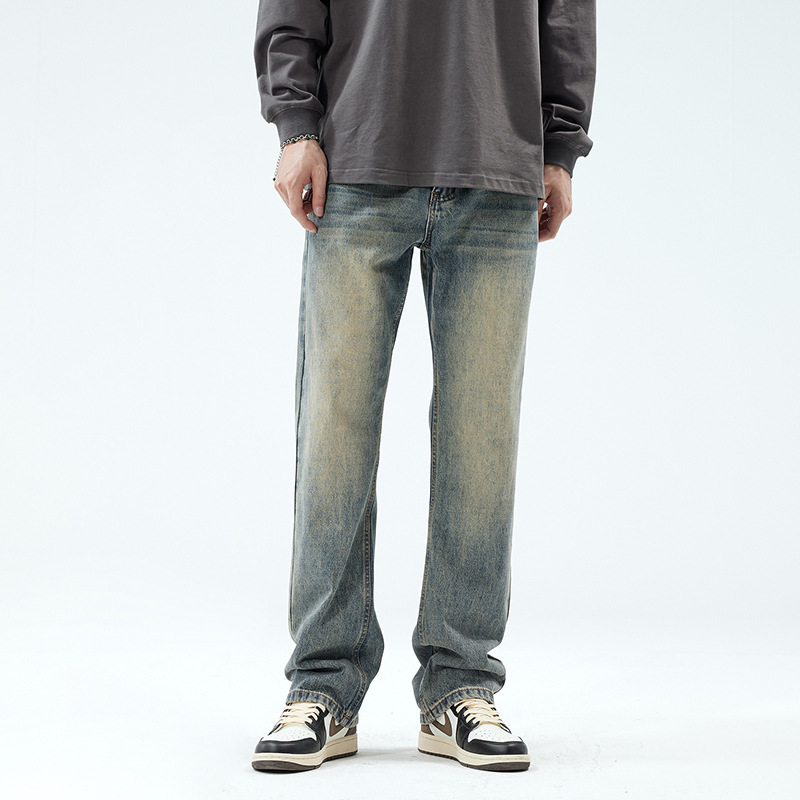 2024新型アメリカのレトロなストレートジーンズの流行は、重いポンドの水洗士がジーンズ男を修理する