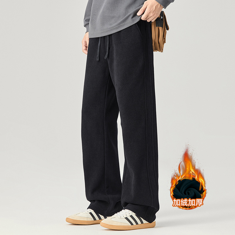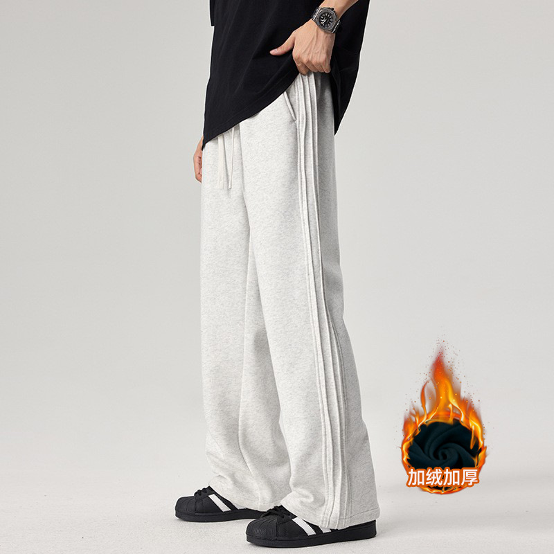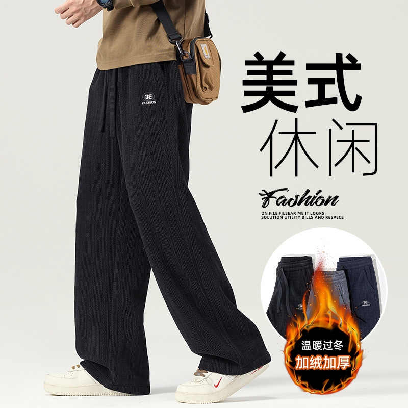 爆款男装 /秋冬新款加绒加厚针织美式宽松直筒男士休闲裤拖地裤