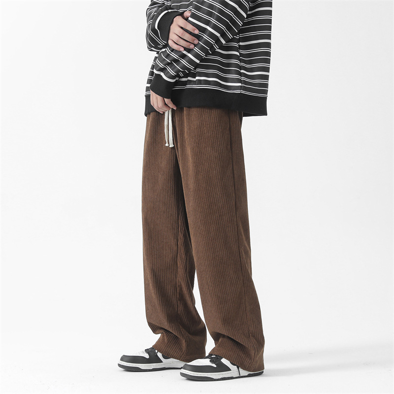 裏起毛厚手快適コーデュロイパンツ メンズ 紐付き ゆったりストレート ワイドレッグ ロングパンツ メンズ 2024秋冬