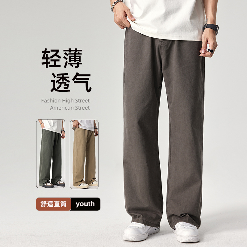 ファッションファッションブランドのアメリカストレート長ズボン男 #春百合ins軽熟高級感カジュアルズボン男2025