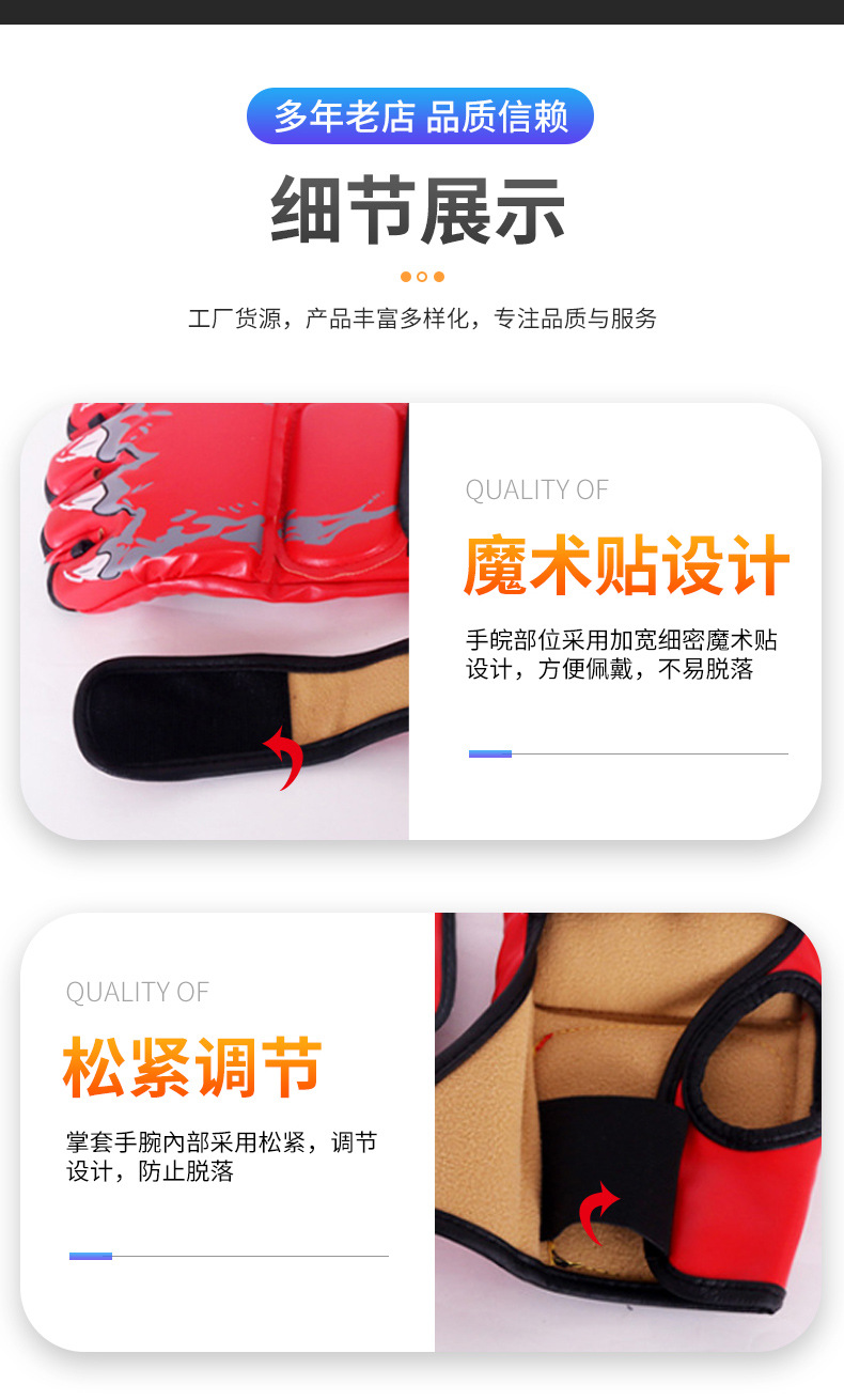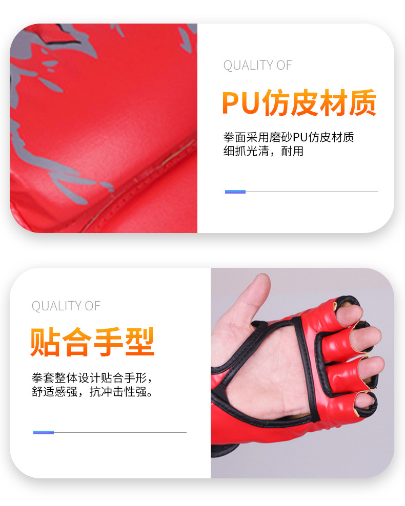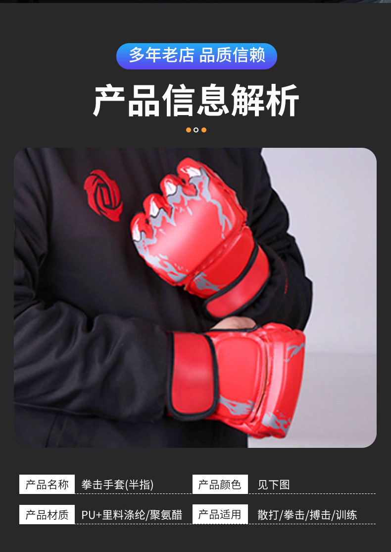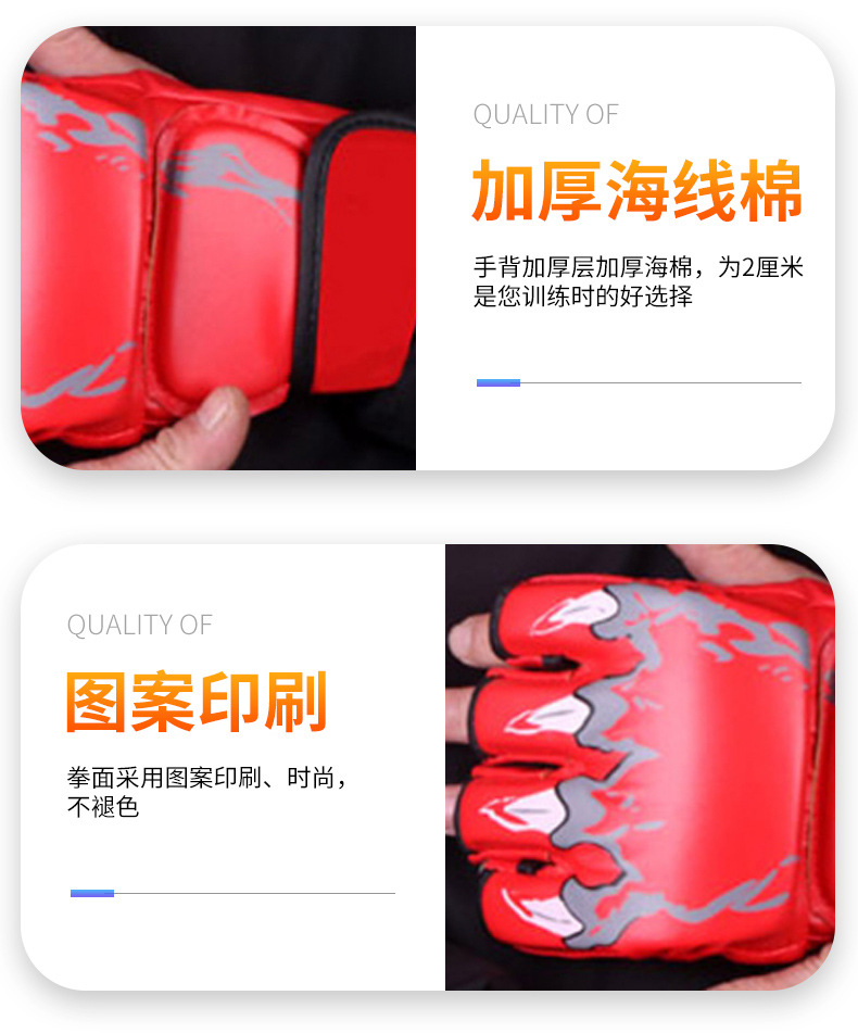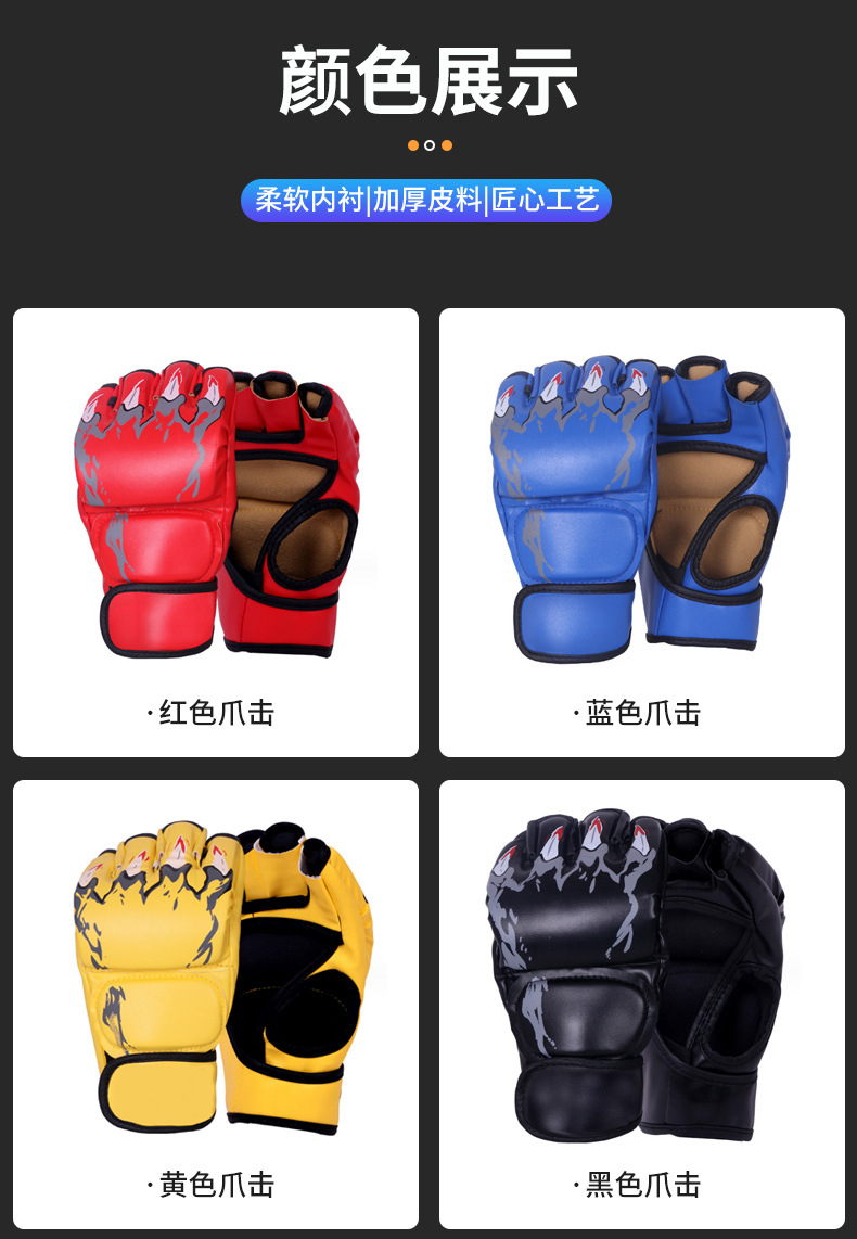 散打半指ボクシング手袋成人児童運動格闘MMA手袋分指ボクサー