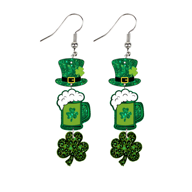 クロスボーダー聖パトリックの日ビールの日のイヤリングのイヤリングのイヤリングの復古の四つ葉のクローバーの欧米のイヤリングの個性の耳の装飾品の女性
