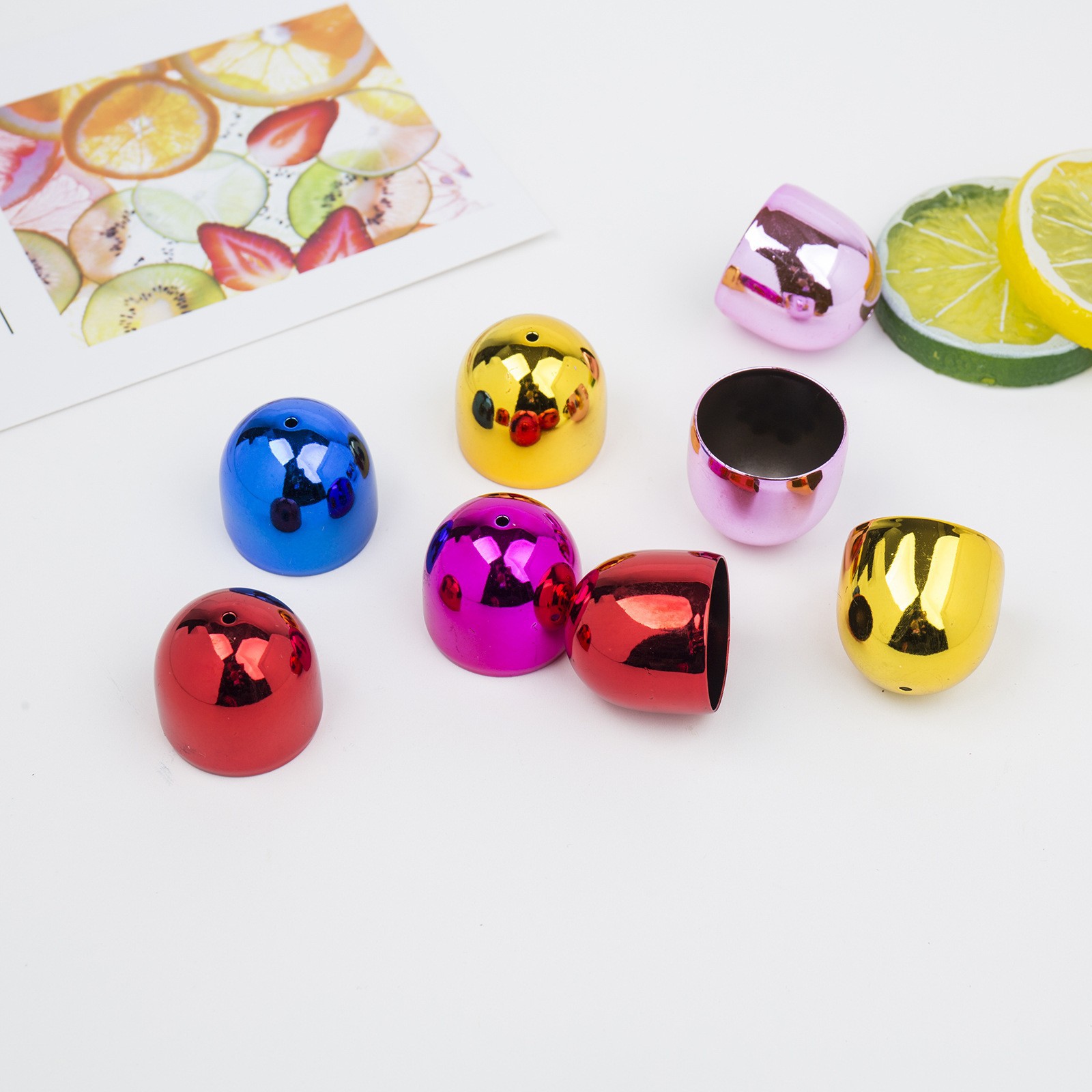 現物カラーメッキ28mm風鈴飾りカップ蓋復古民族風部品金属開口小鈴