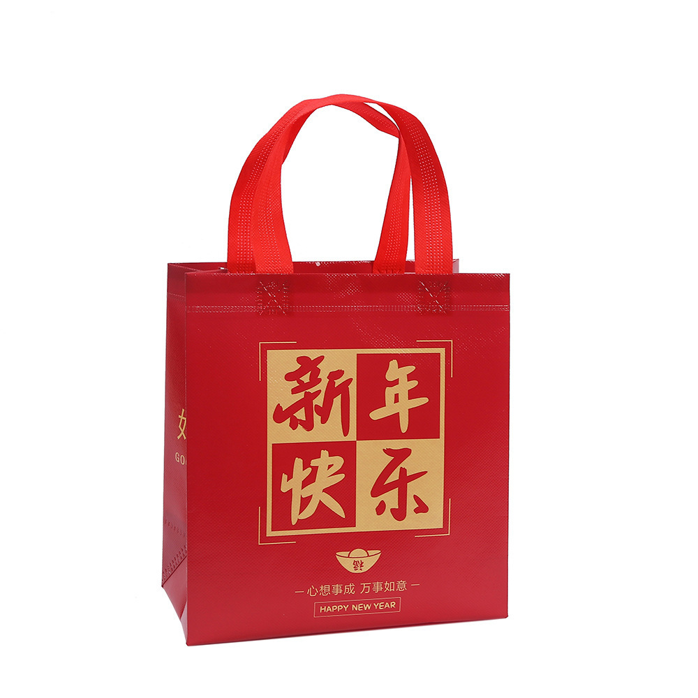 卸売り不織布レジ袋お祝い新年文字手提げ袋プリントプレゼント包装袋防水ギフトバッグ外