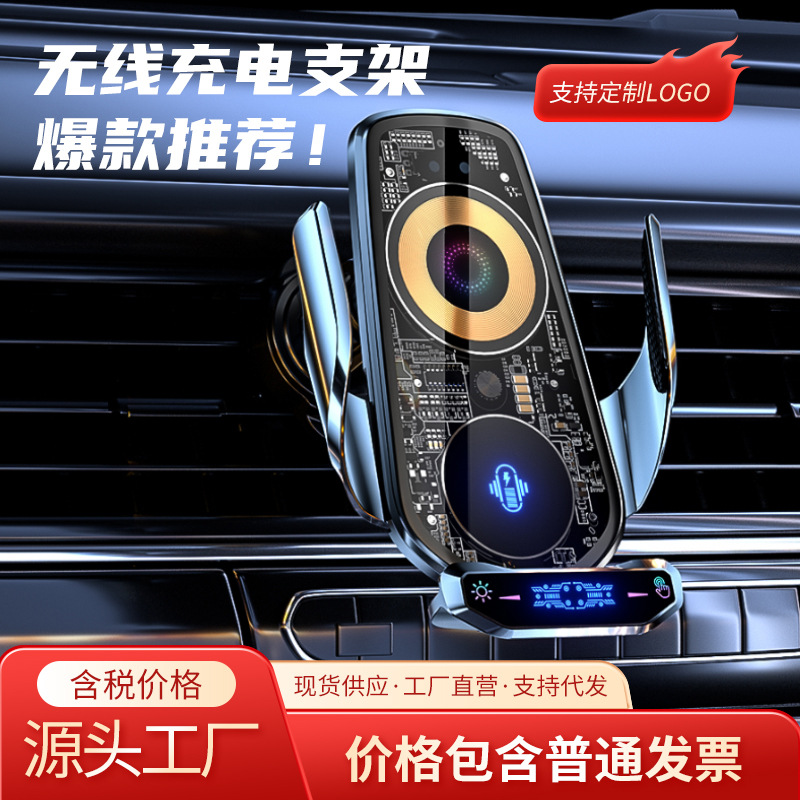 源工場車載携帯電話スタンド赤外線自動開閉15w無線充電カラーロゴ自動車用品