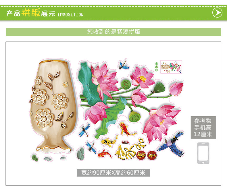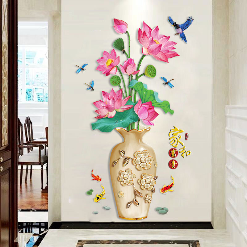 Xy 9005ハスの花の花瓶はリビングルームの寝室の装飾壁に貼り付けてテレビの背景の壁の中国風の玄関に貼り付けます。