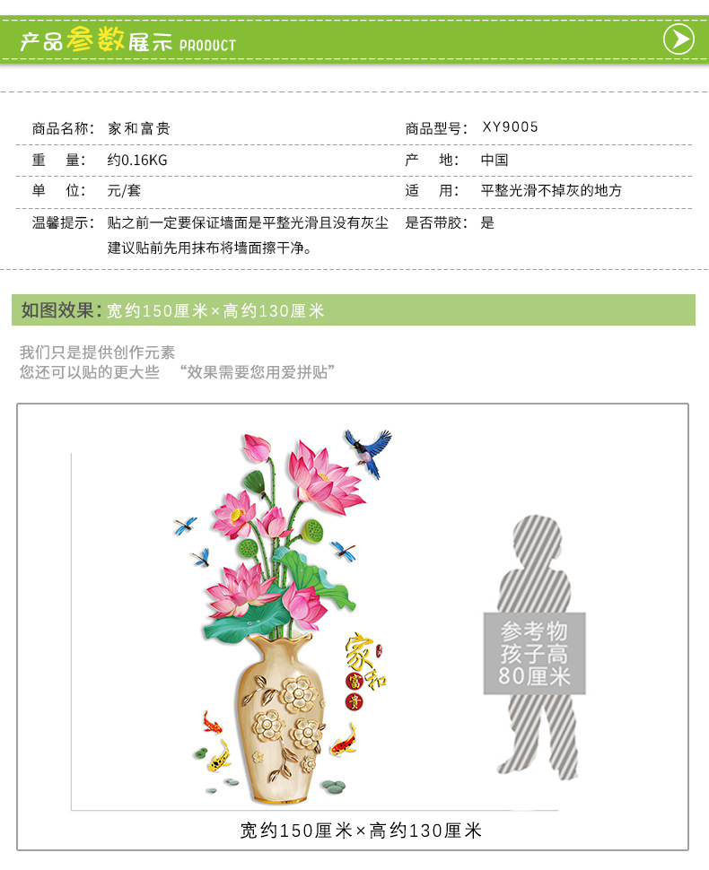Xl 7186仲蘭メーカー卸売り花幅足線寝室客間装飾移動可能透明膜防水壁貼り画