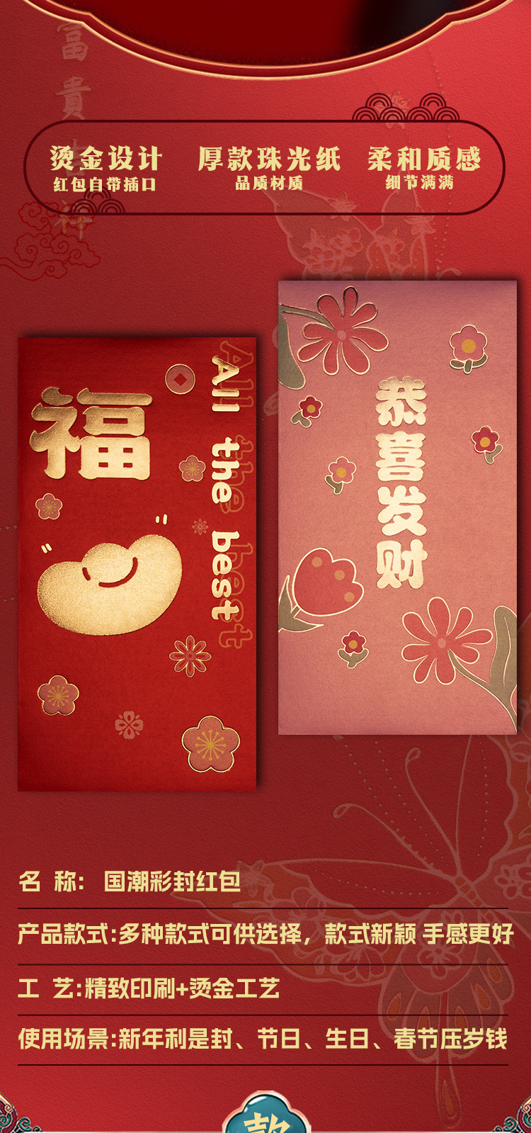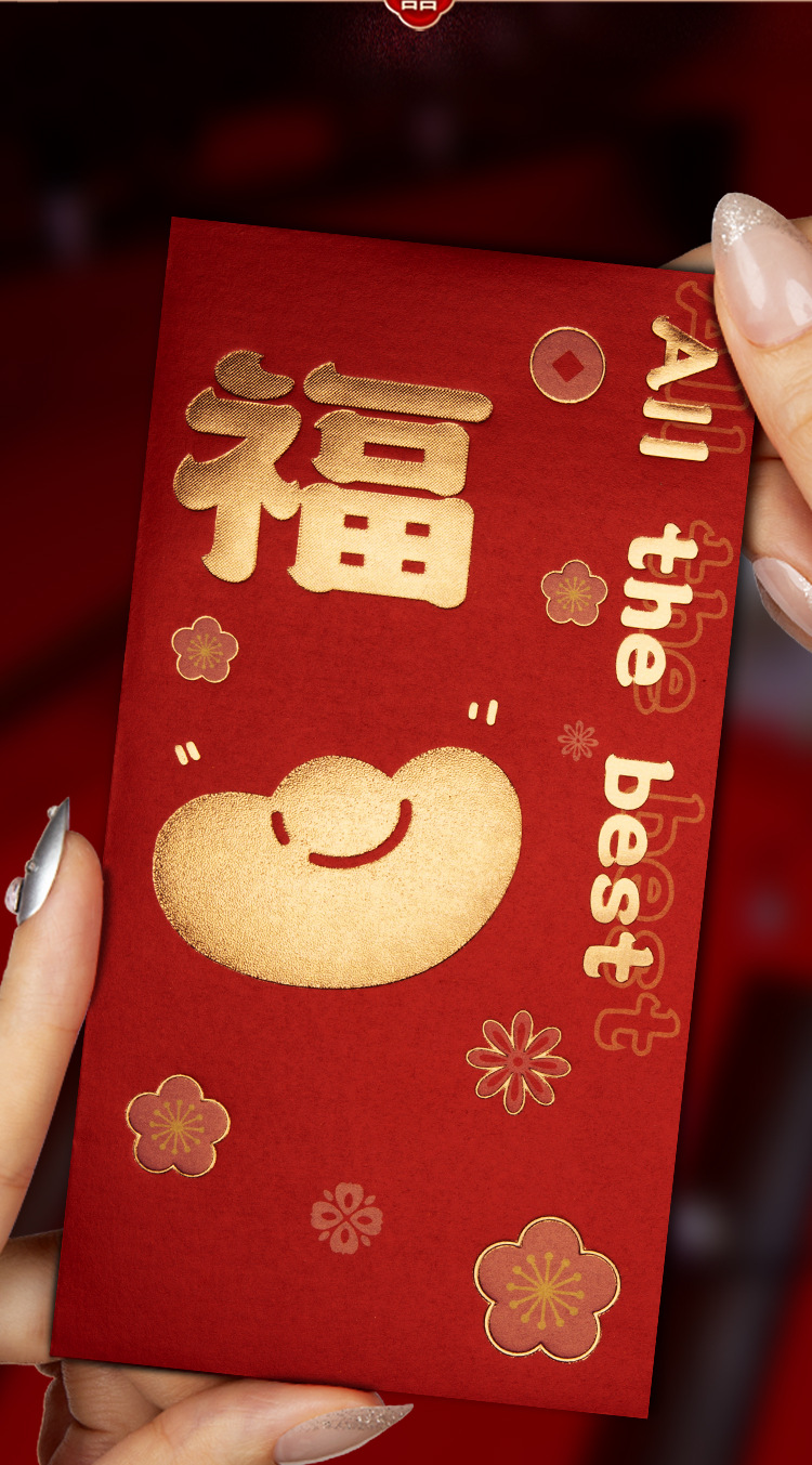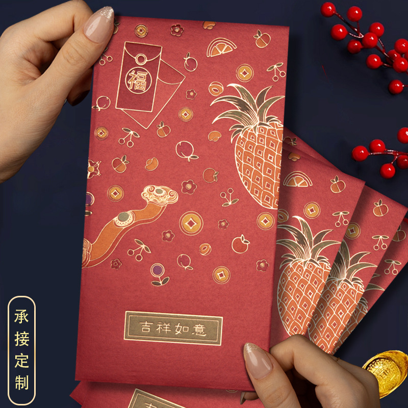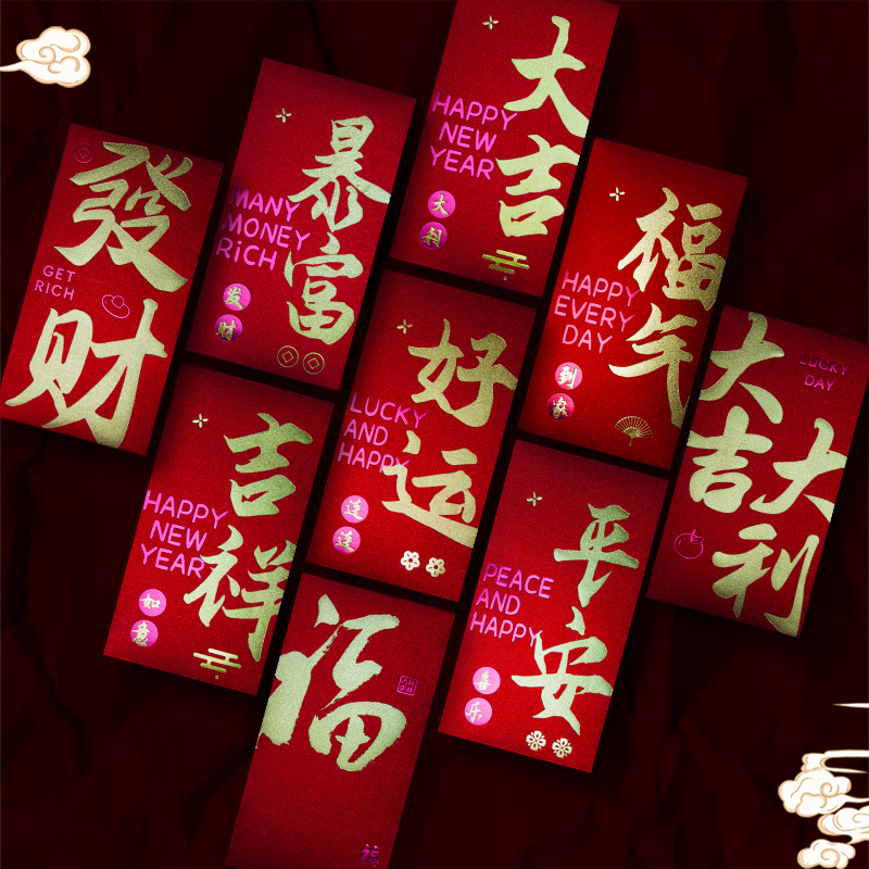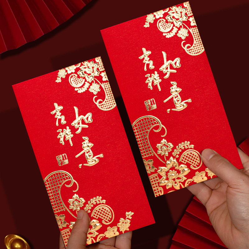 2024新春金吉祥如意珠光硬紙利は箔押し文字のアイデアお年玉の共通の赤いバッグである