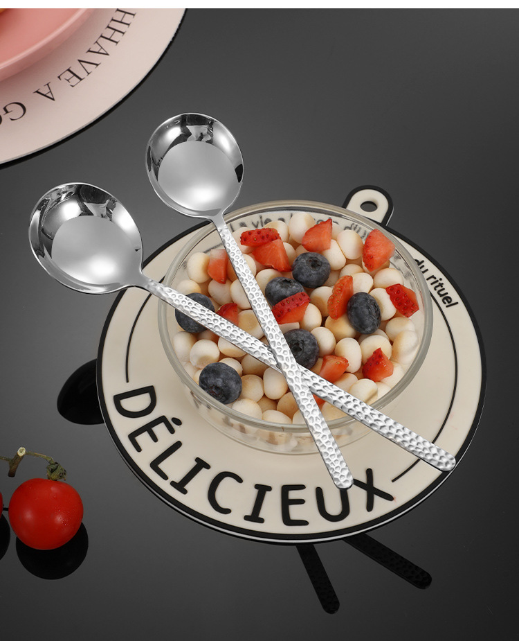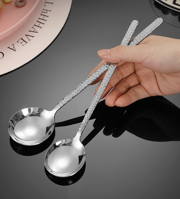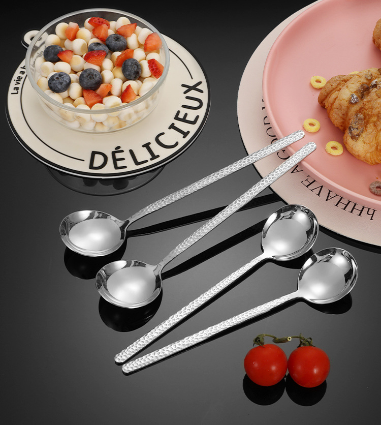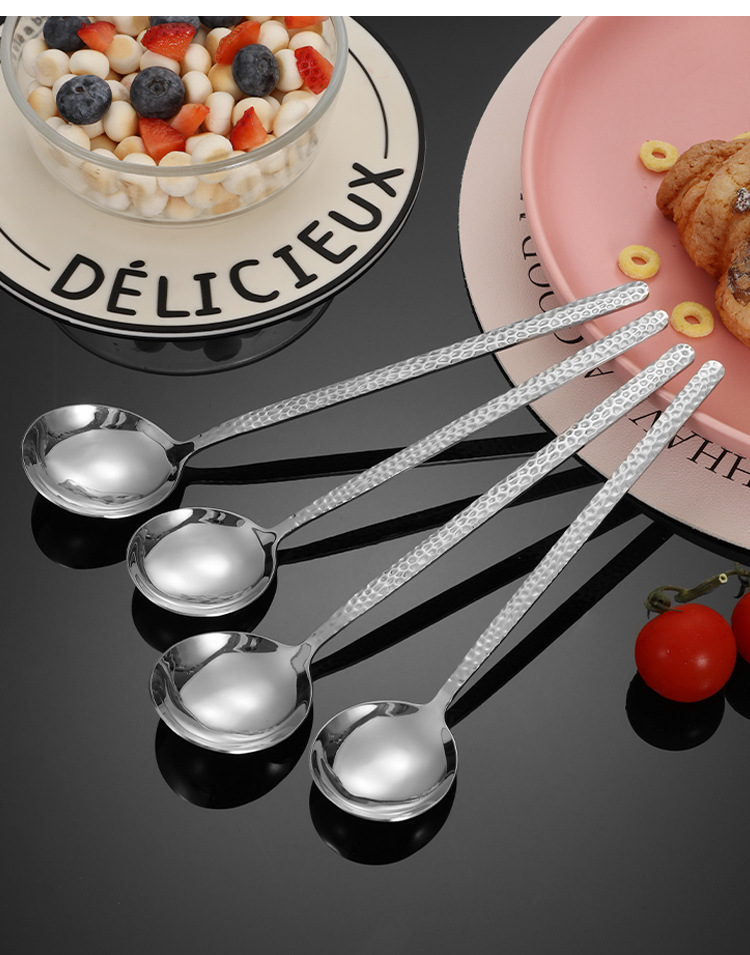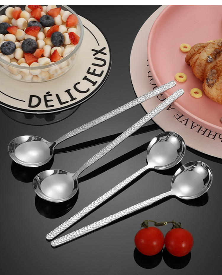 長柄スープスプーン 家庭用スプーン 輸入品 ハンマーパターン 304ステンレススプーン 洋食レストラン ホテル 高級食器