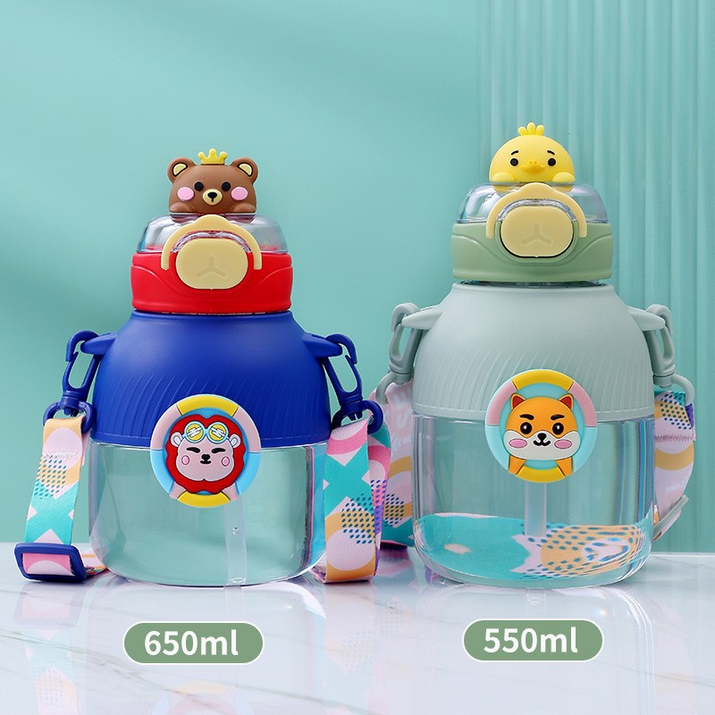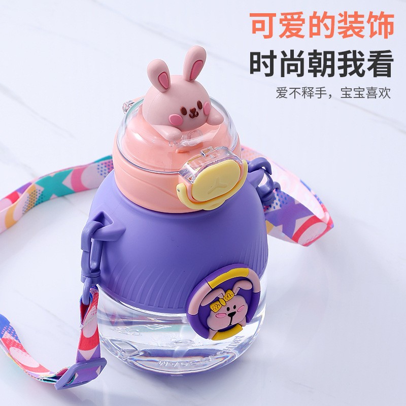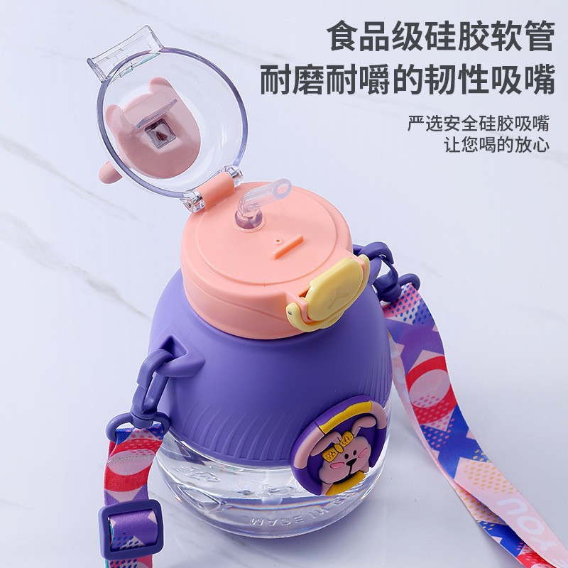 高颜値かわいい漫画子供ストローカップ携帯ストラップ屋外カップ耐落下プラスチックカップ