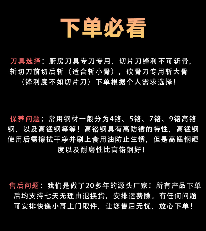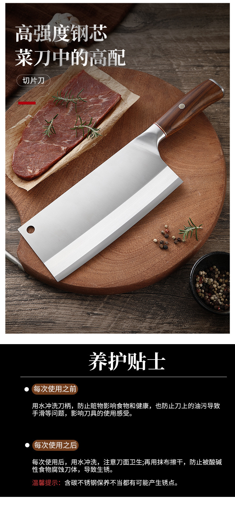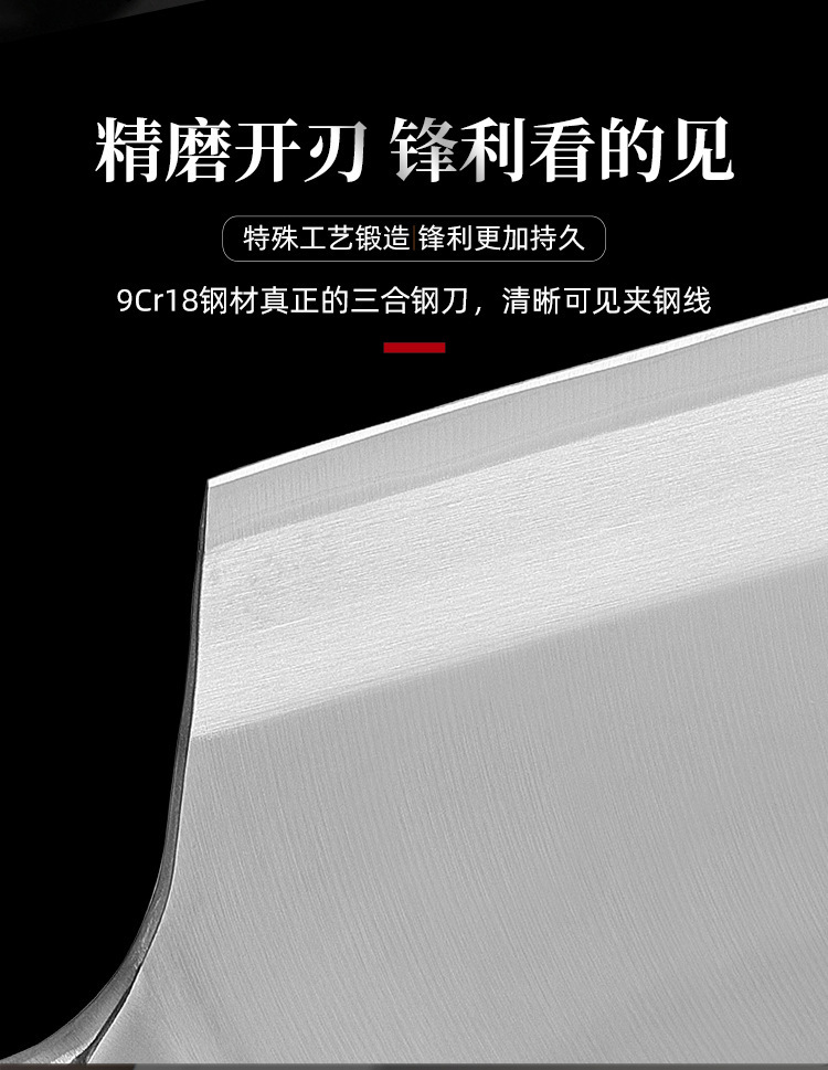 9CR18MOV三合钢高硬度菜刀锋利家用切肉刀不锈钢菜刀切片刀夹钢刀