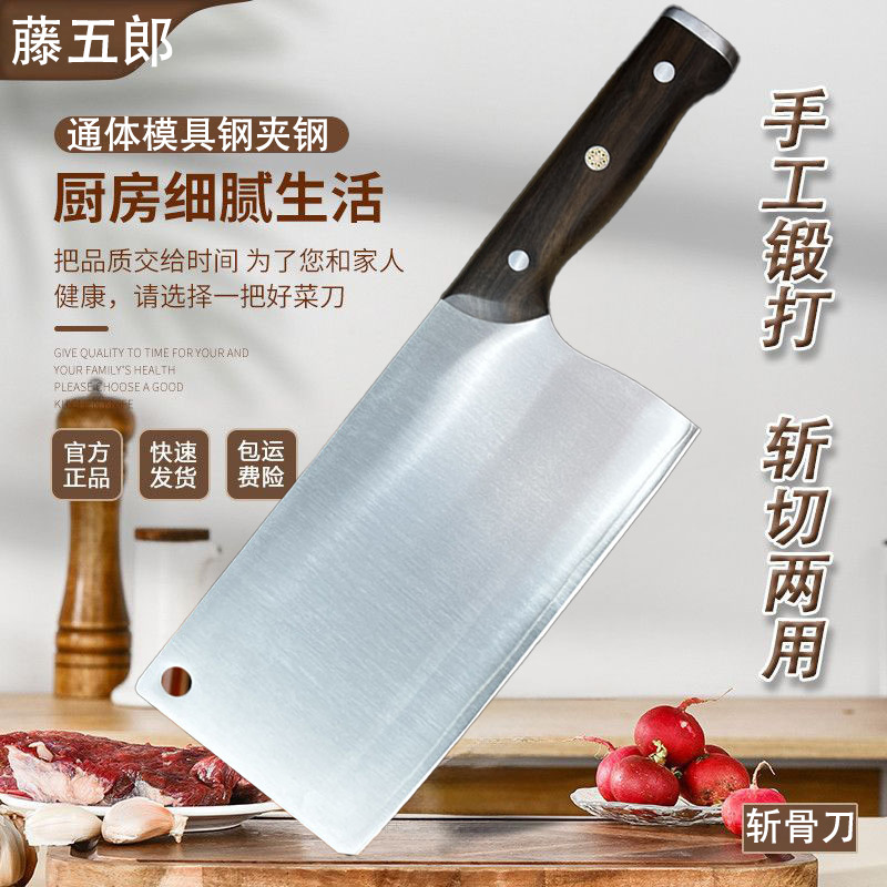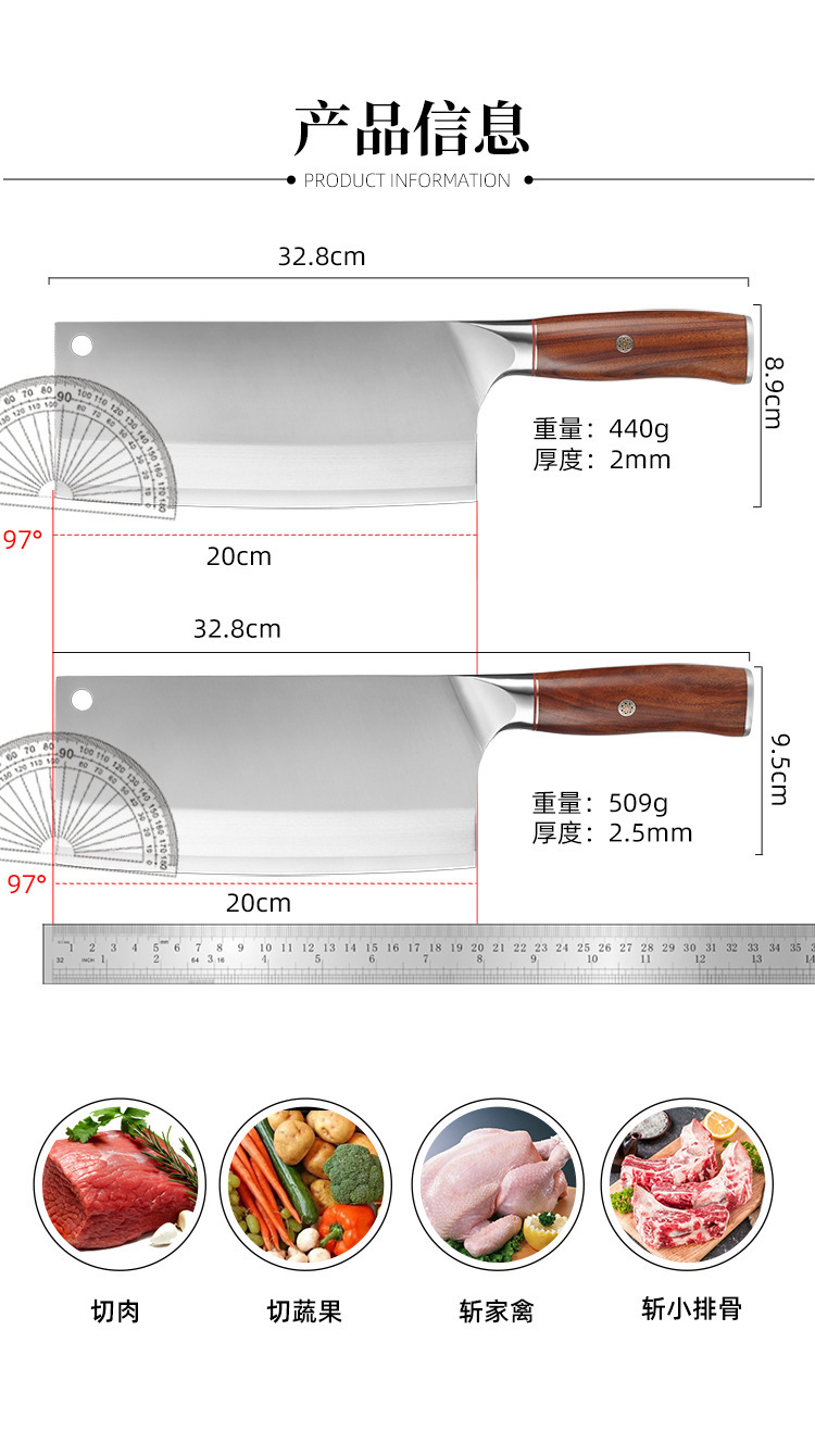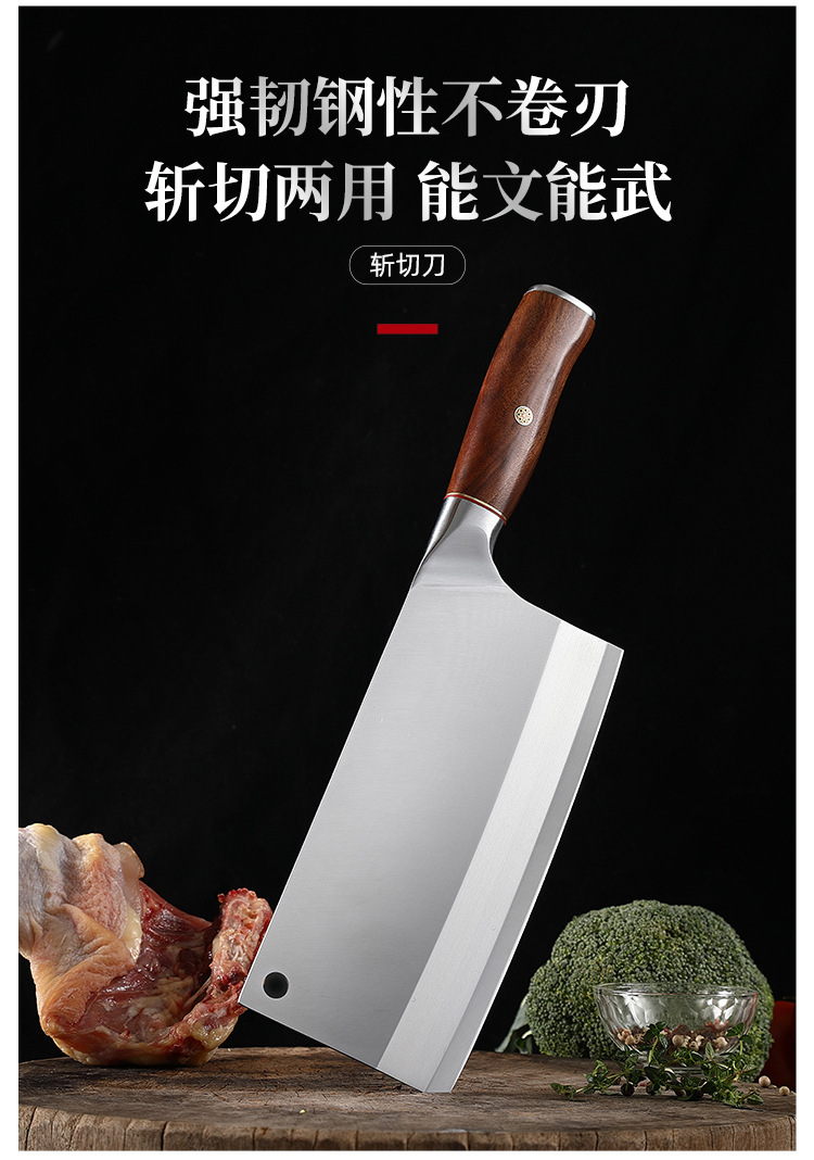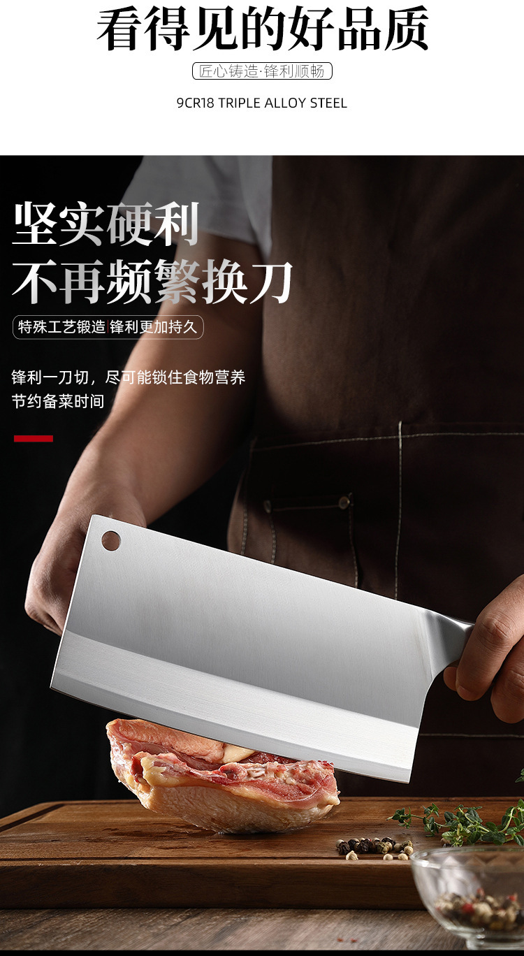 90Cr家用菜刀三合钢夹钢不锈钢刀具厨房切菜刀斩切两用刀切肉菜刀