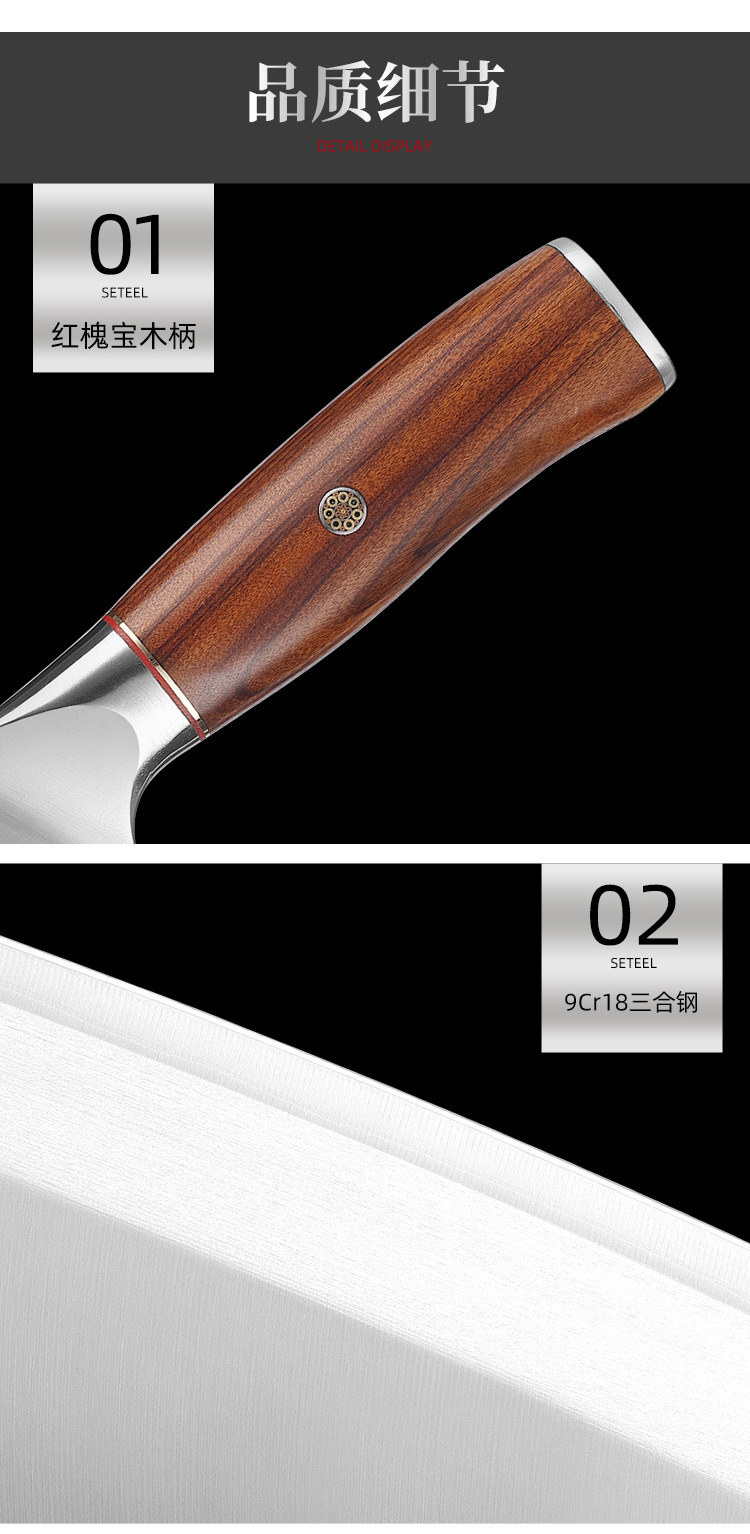 紫檀木三合鋼包丁桑刀カットスライス包丁切り肉料理家庭用厨房鋭利刃物セット