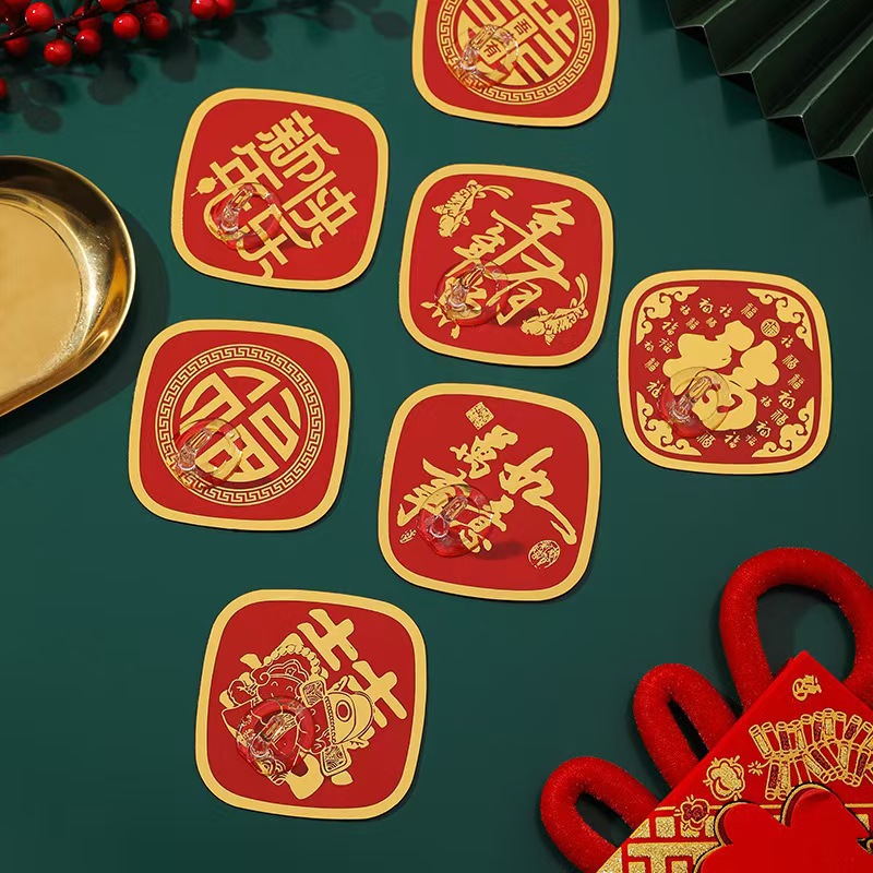 彩色连排挂钩喜庆挂钩免打孔粘钩无痕粘钩六连强力粘钩壁吸盘挂钩