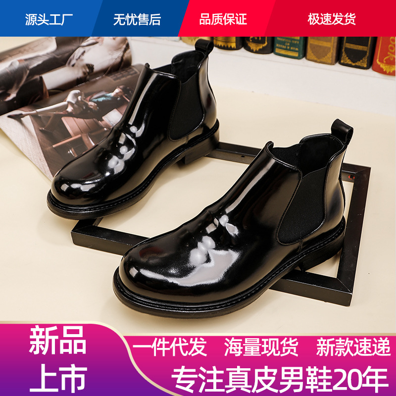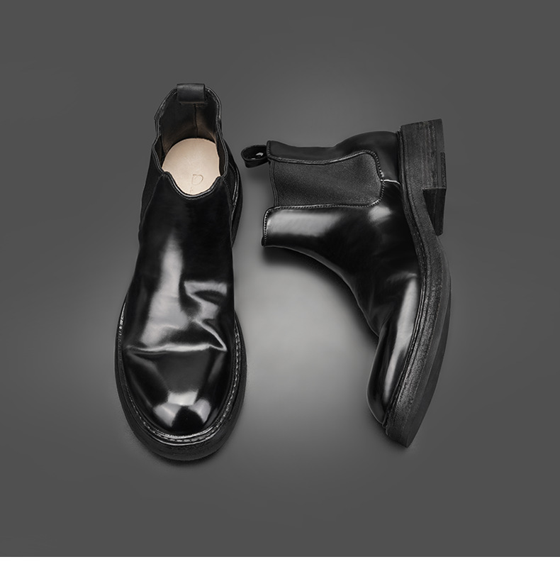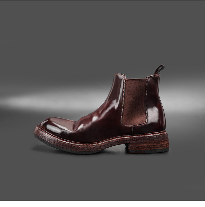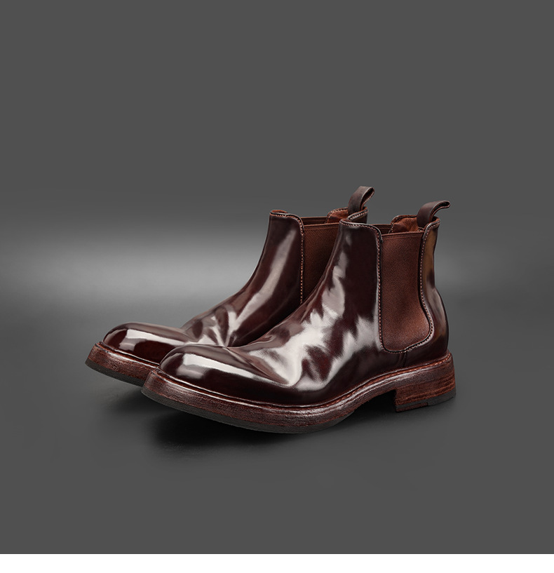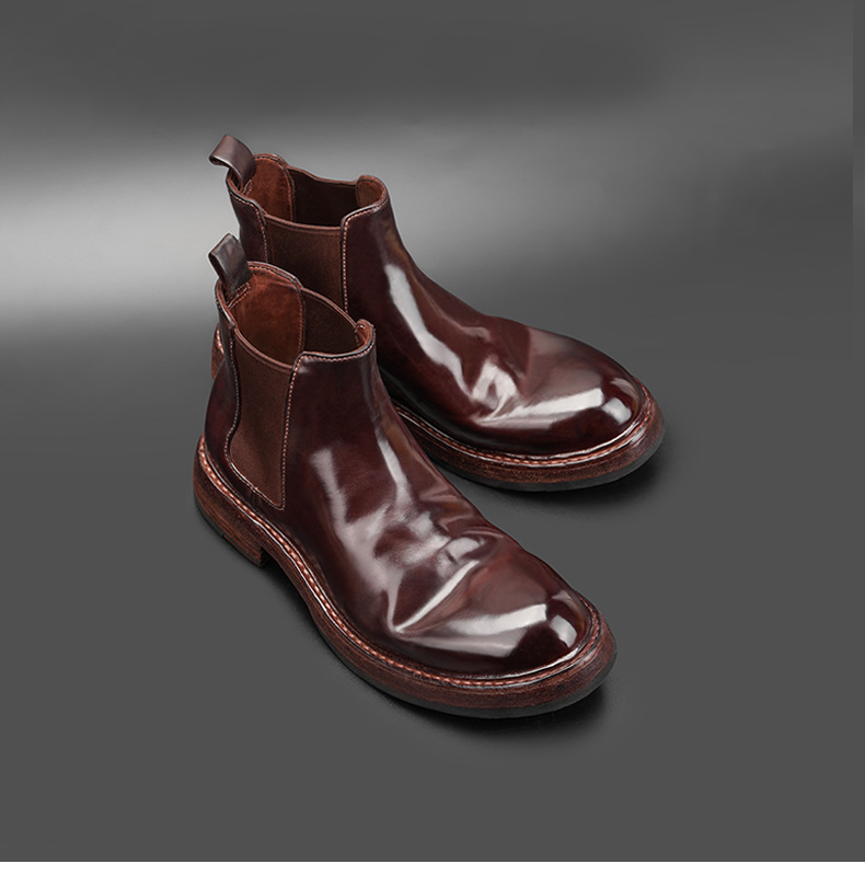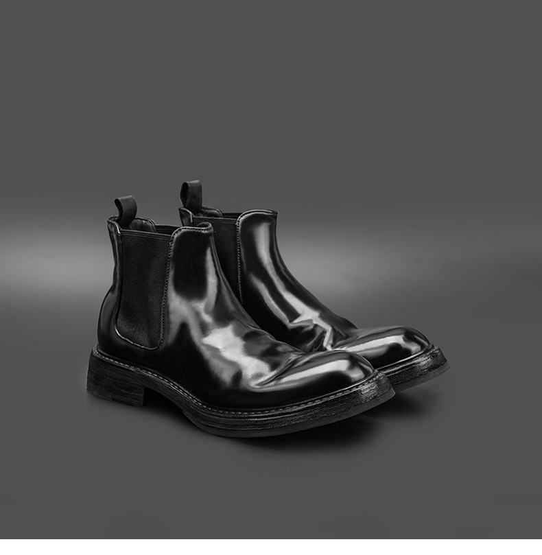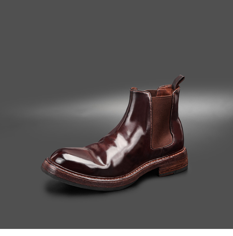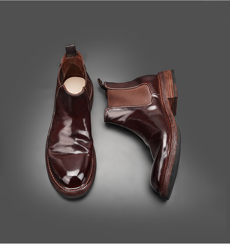 工場直販 イタリア産馬臀革を使用した高級メンズチェルシーブーツ グッドイヤーウェルト製法メンズブーツ