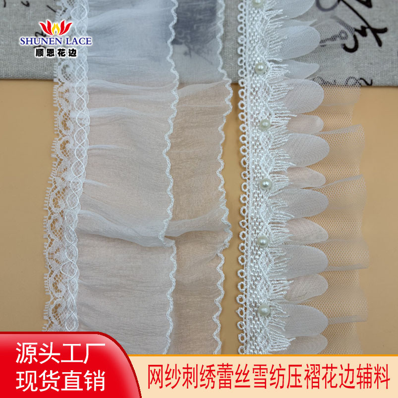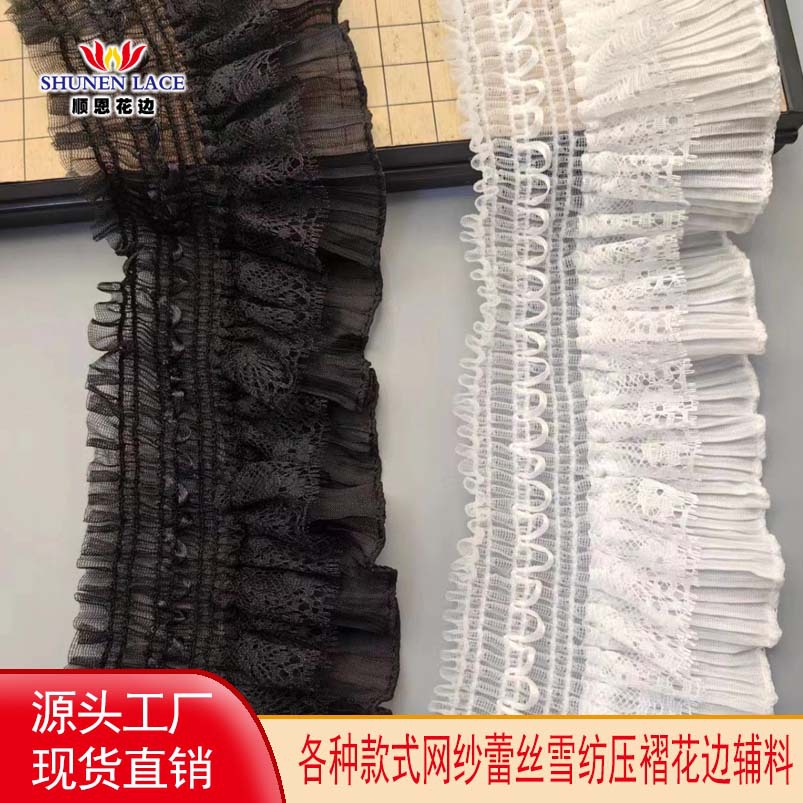 品名:雪纺压褶蕾丝弹力花边 规格:9cm左右