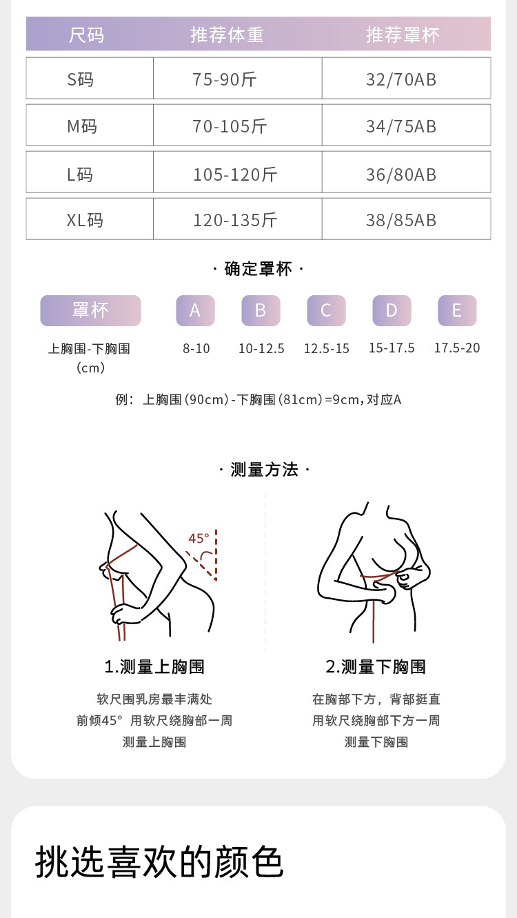 サイズ S【32/70AB】,M【34/70C/75AB】,L【36/75C/80AB】,XL通常版[38/80C/85AB]