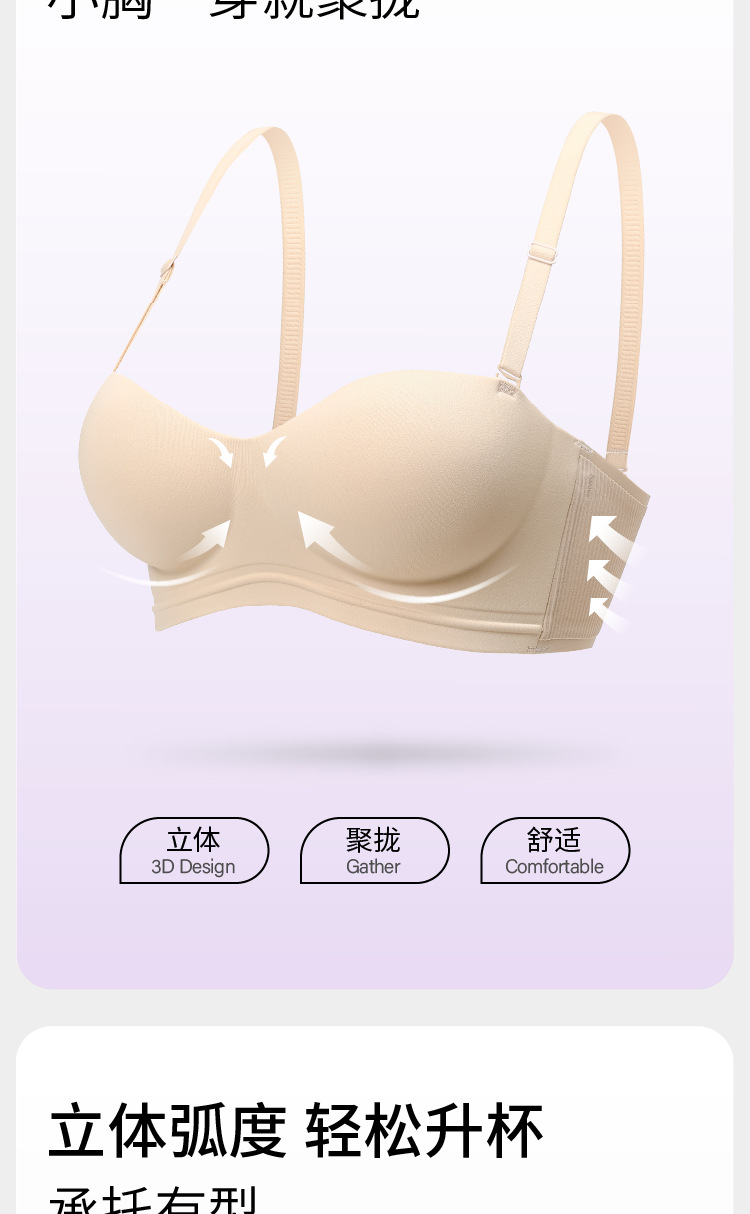 织就圆圆杯内衣聚拢防滑隐形上托细肩带抹胸裹胸小胸文胸女欧若风