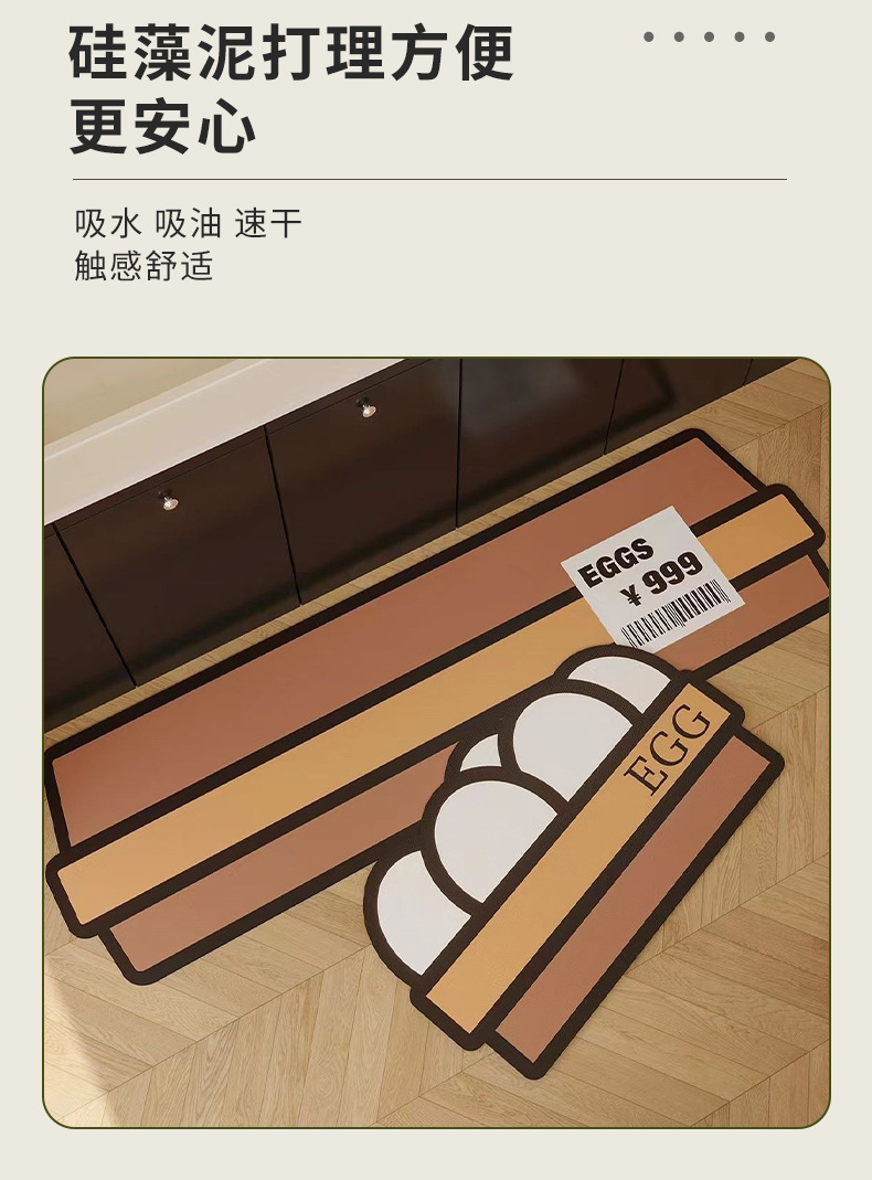 新品insドーパミン可爱いキッチン珪藻泥防油可拭き取り无し滑り止め吸水足マット汚れ防止防水