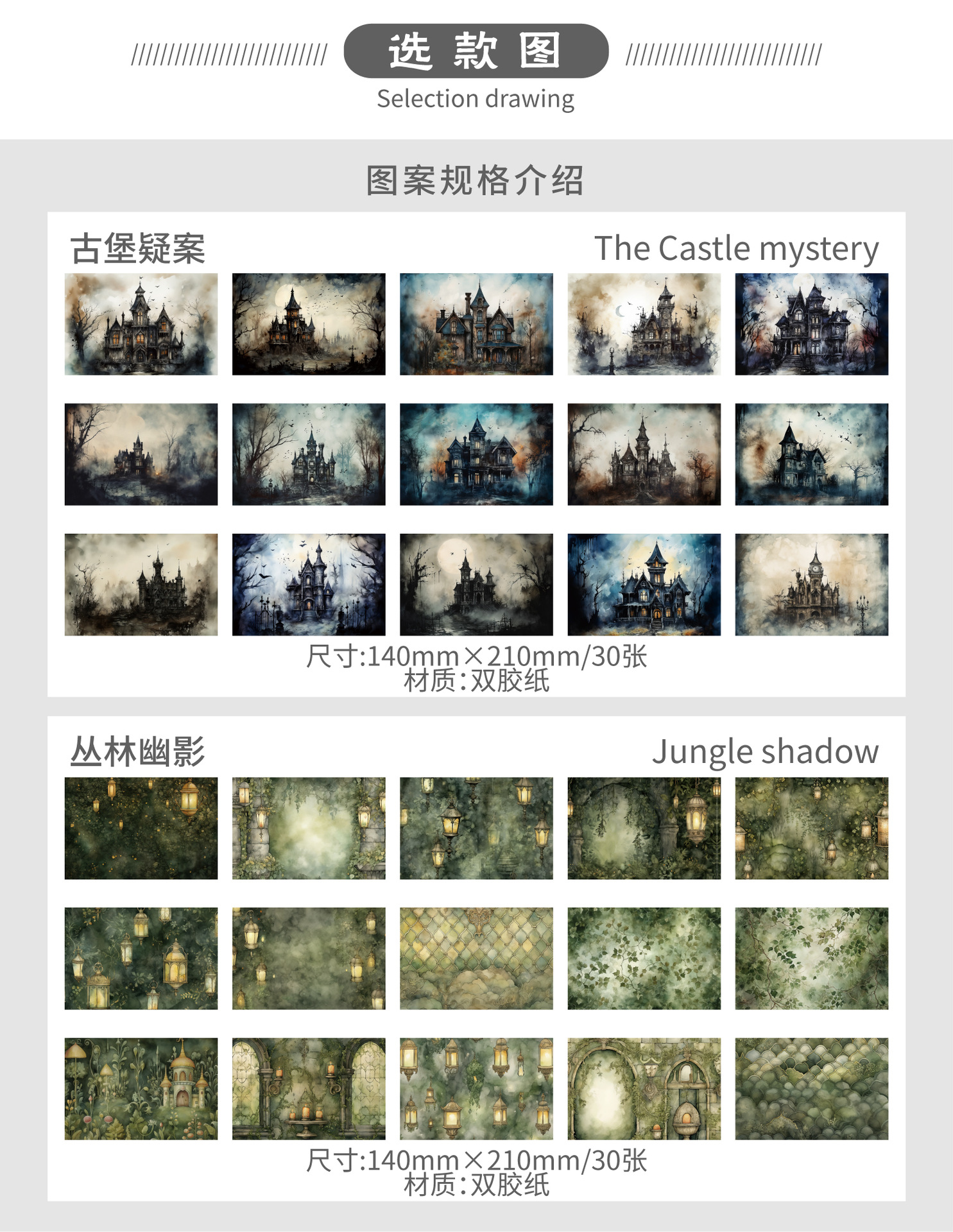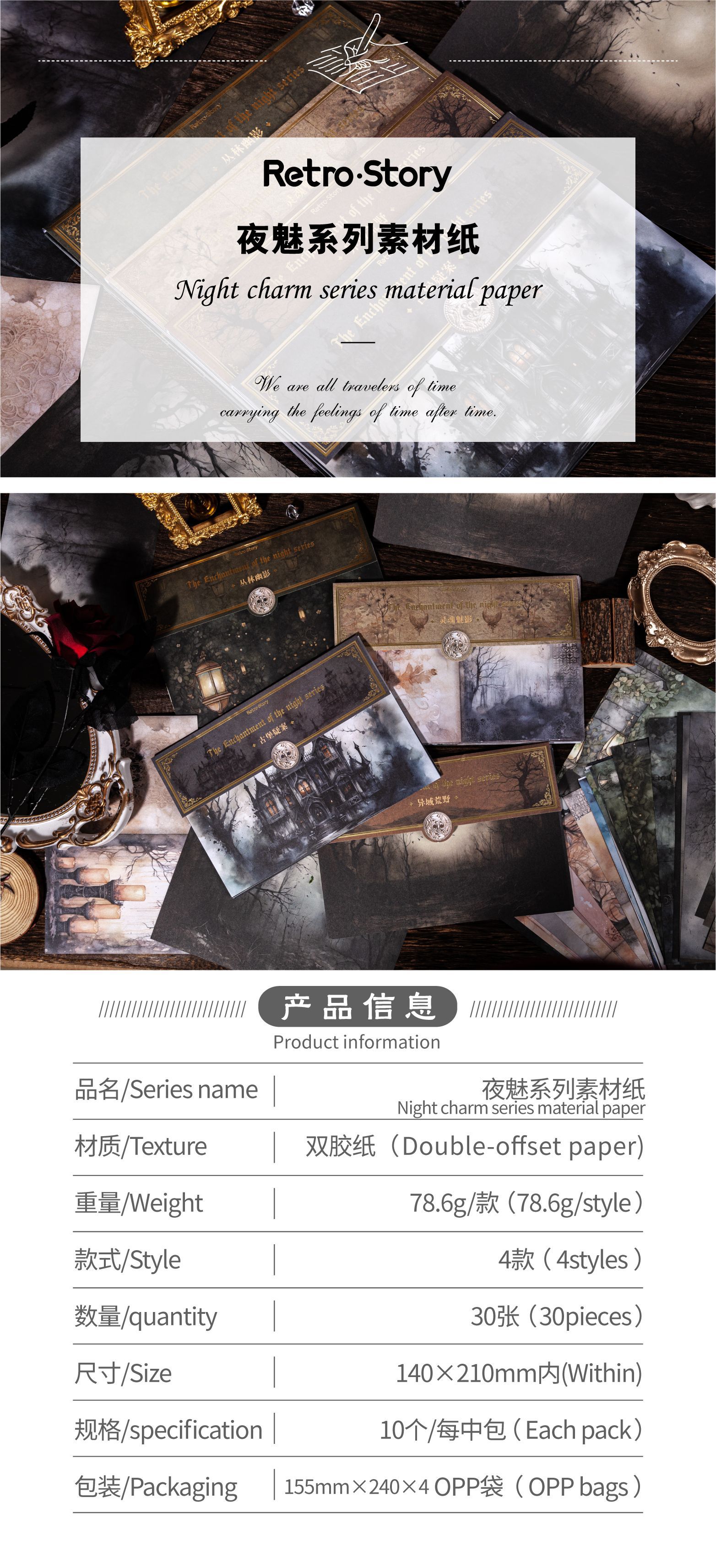 レトロStory素材紙夜魅シリーズレトロ手帳素材装飾タイル底貼り絵4項