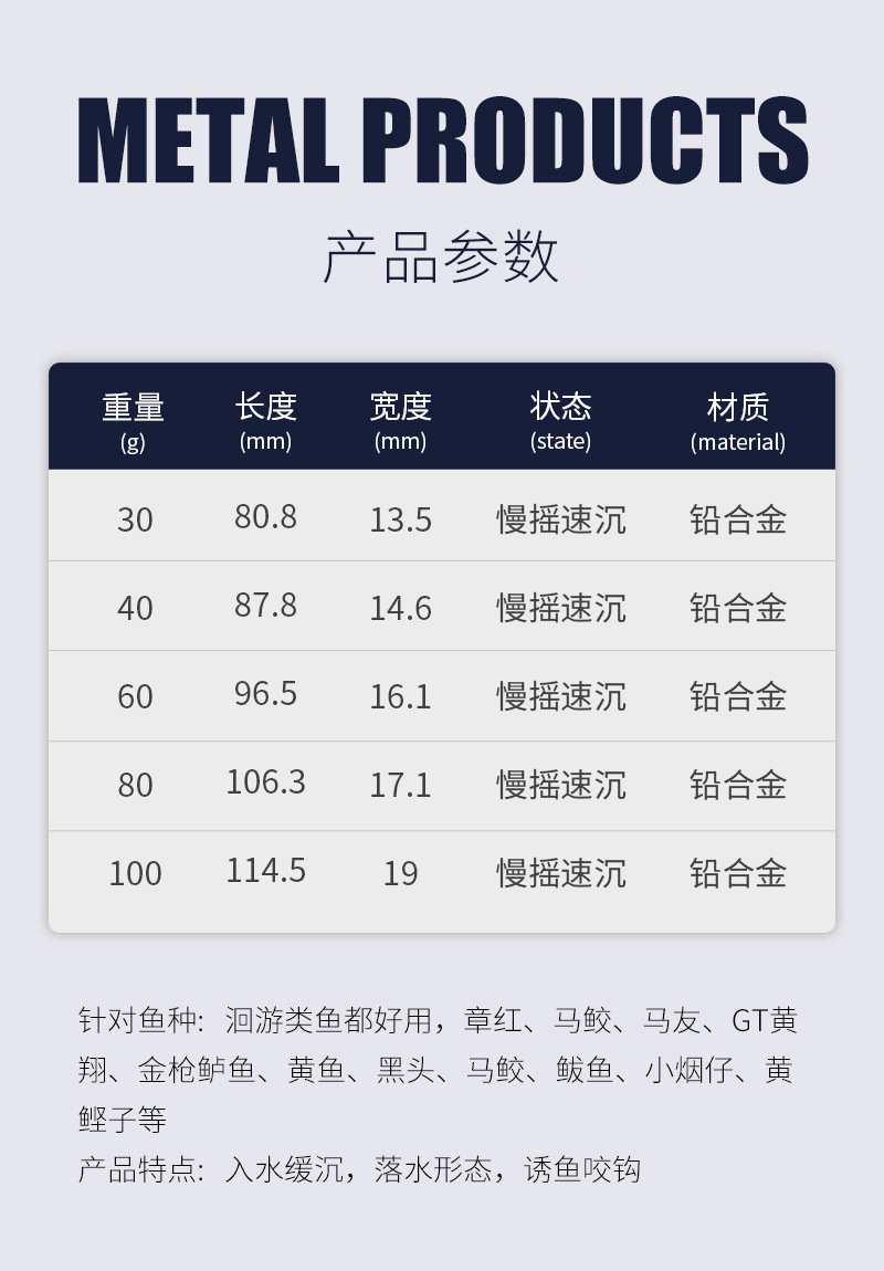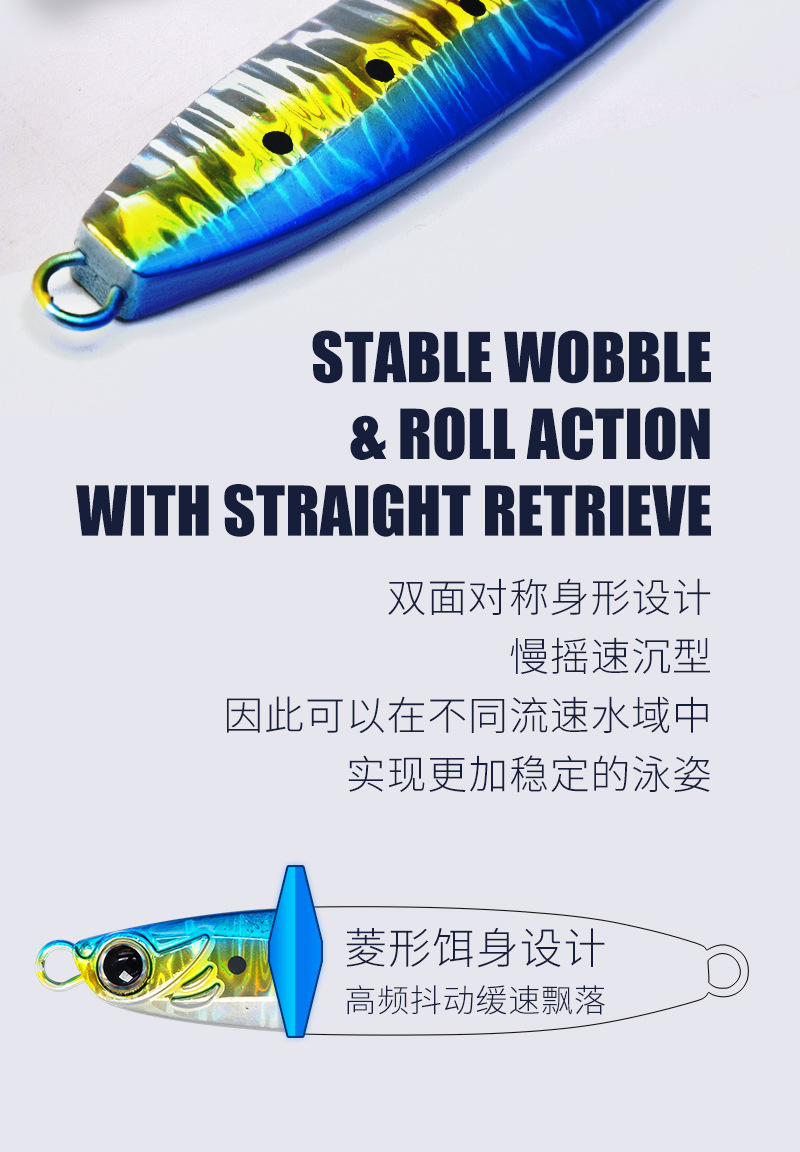 スローシェイク、速沈、海釣り、ボートフィッシング、アングルキャスティング、高速ポンピング、夜光鉄板餌、カジキ、サバ、マグロ、バス、メタルルアー