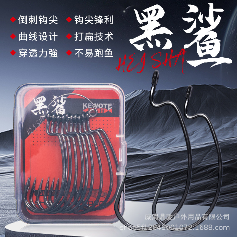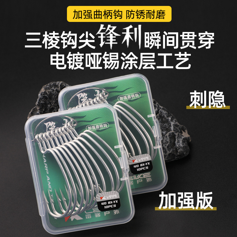 6倍強化クランクフック、太字4/0、5/0、黒雷強力フック、ワイドベリールアーフィッシングフック、バスバルクインバーティーフィッシングフック