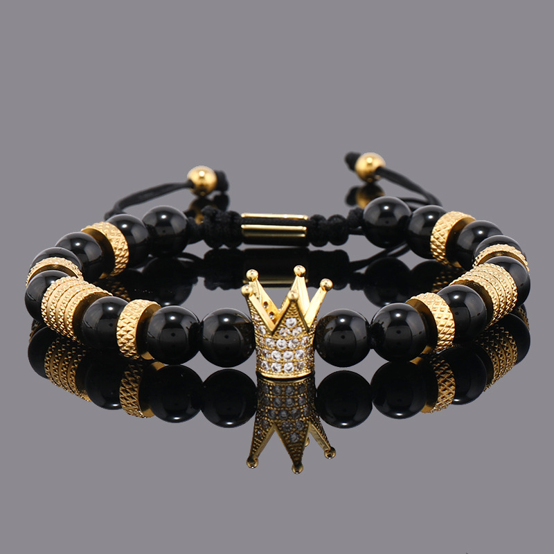 国境を越えた男性の天然A虎石藍虎皇冠ビーズブレスレット、ファッションステンレス仕切り王冠編みブレスレット