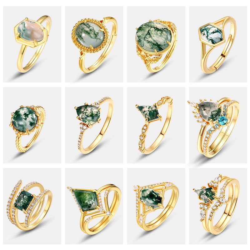 国境を越えたアマゾンの新製品欧米の創造性緑コケ石天然メノウ三点セット女性婚約指輪