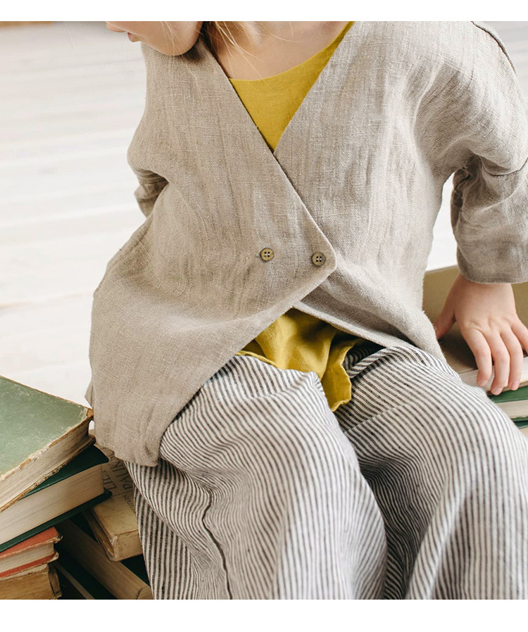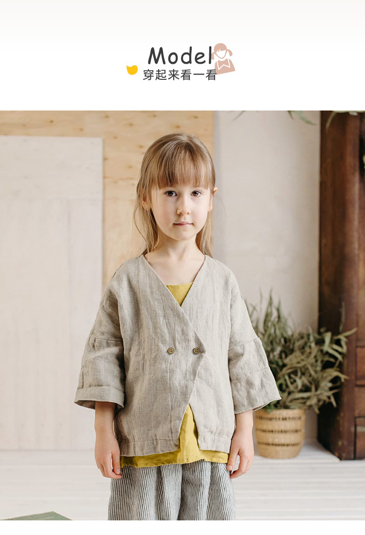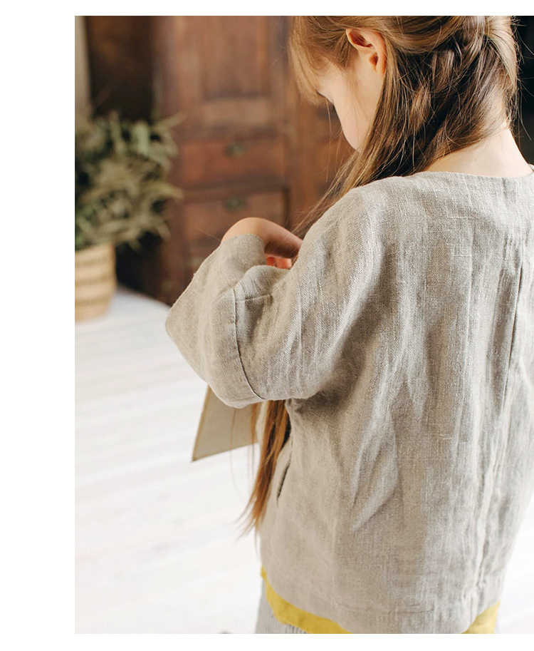 2025 春と秋の新スタイルリネンコットンクロス前立てジャケット女の子日本文学ニッチシックなルーズカーディガン女の赤ちゃん