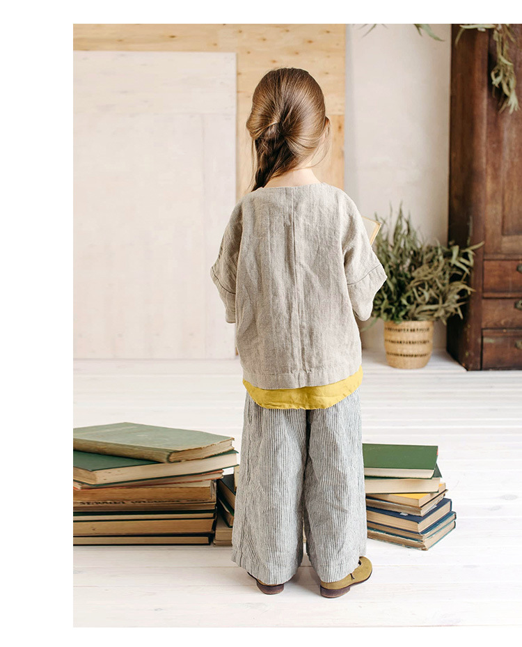 女児服綿麻ベビードールシャツ北欧風長袖Tシャツラウンドネックシャツカレッジスタイルカジュアルウエスタンスタイル麻綿トップス