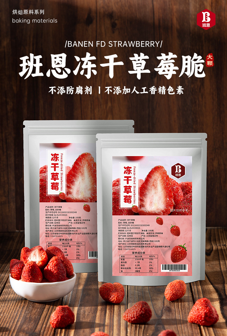 班恩冷凍乾燥いちご乾燥500gいちご脆い間食インスタント焙煎雪花原材料いちご冷凍乾燥果物乾燥