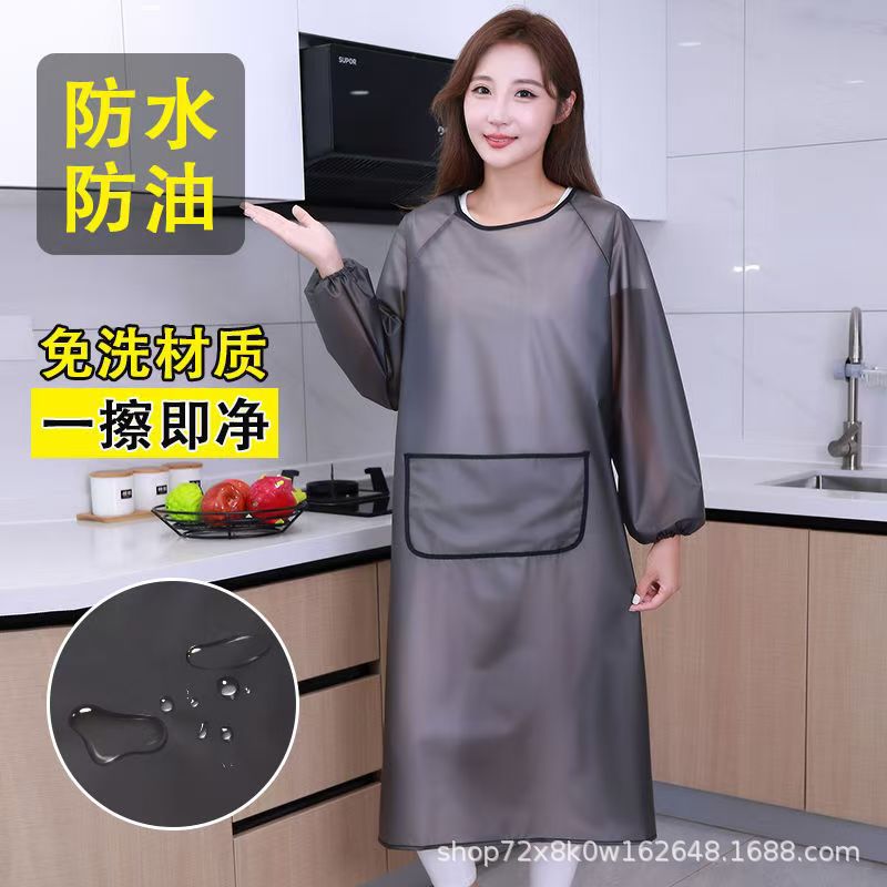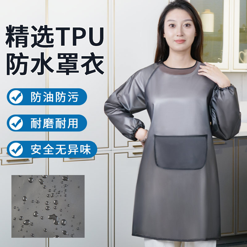 免洗新款TPU罩衣厨房防水做饭TPU长袖围裙男女家用防油水产工作服