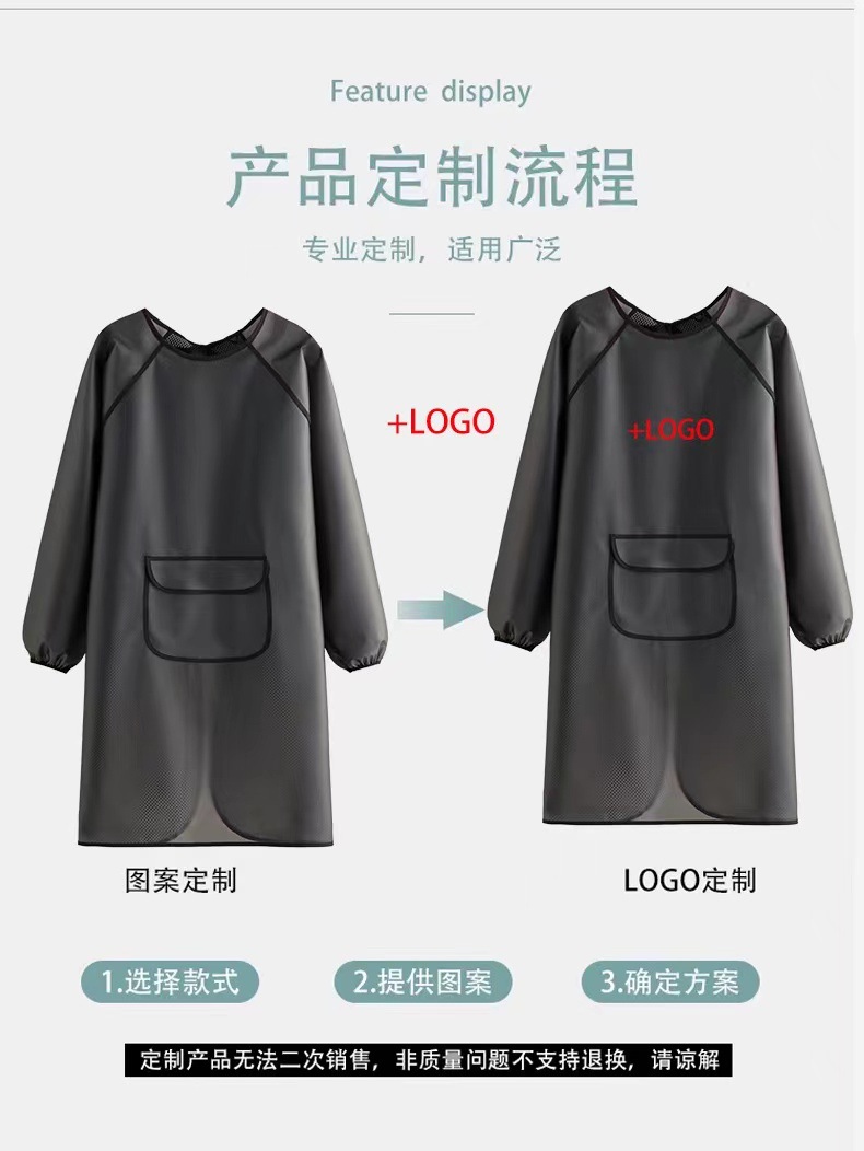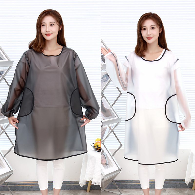 新しいTPUブラウス長袖エプロン防水防油キッチン家庭用無料作業服ロゴ防水エプロン