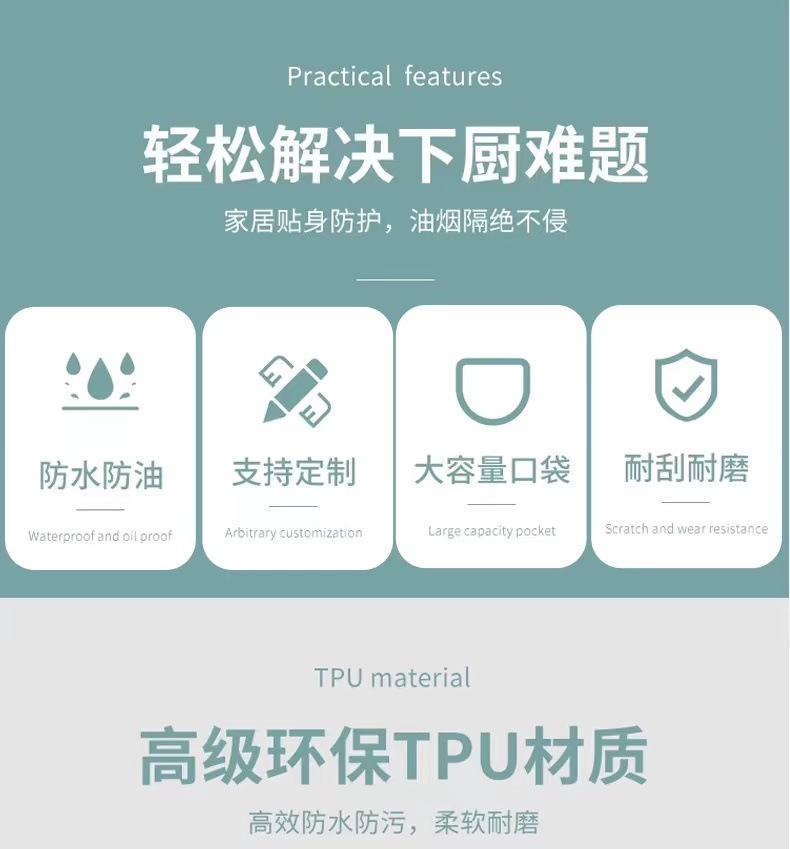 TPU防水防油エプロンはかわいいアニメエプロンで、汚れに強い飲食作業服のカスタムロゴを洗うことができます