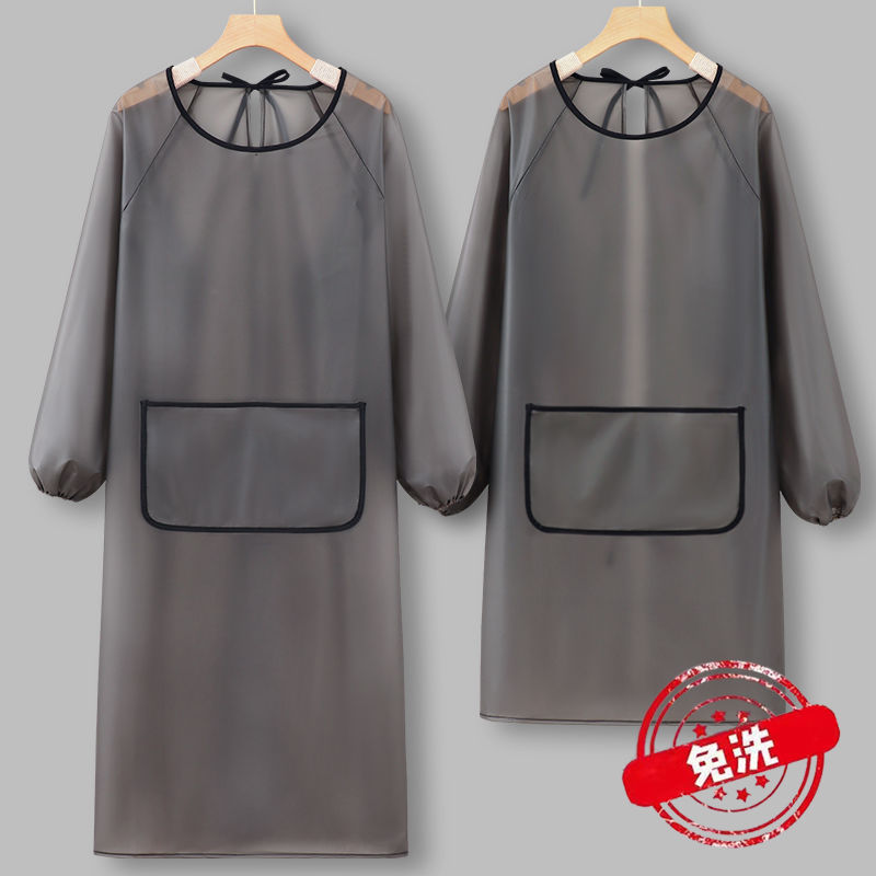 Tpu洗濯なし防水長袖エプロンキッチン家庭用水産飲食専用作業服女性カバーが腰を囲んでいる