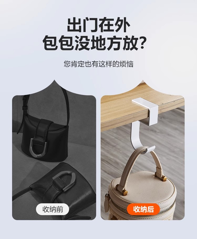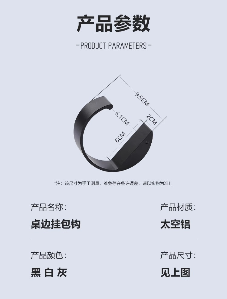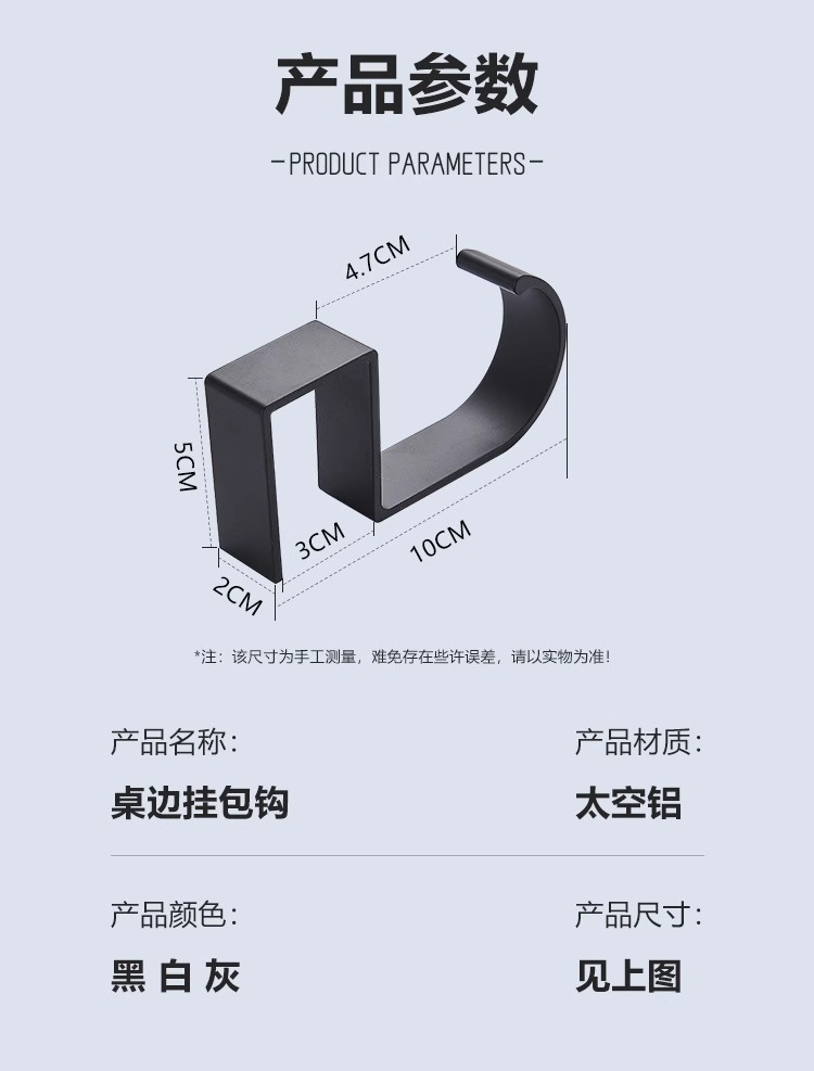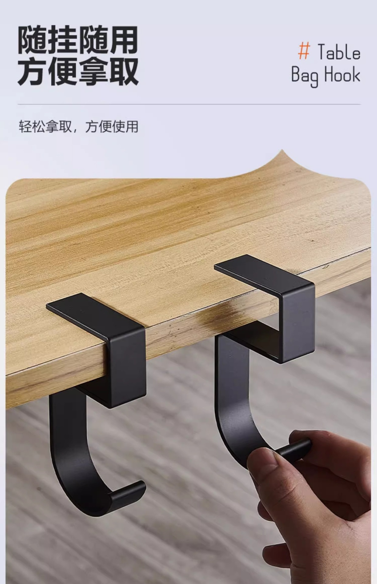 洁西特可折叠桌边钩简约太空铝挂钩桌面收纳整理钩书桌边创意挂钩