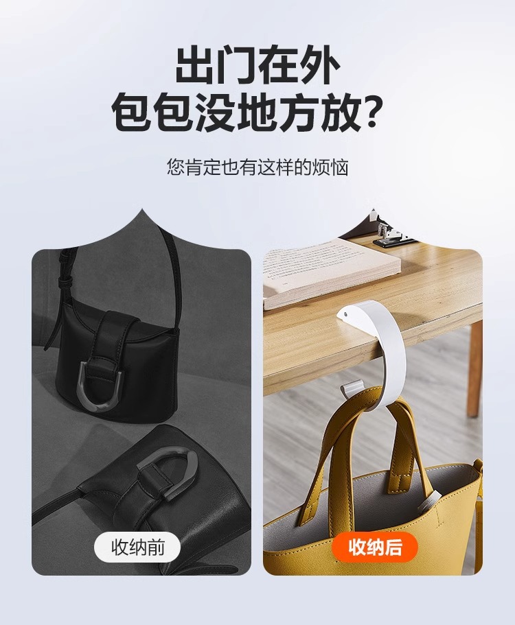 居家好物学生书包挂钩便携办公桌面实用挂钩可移动免打孔课桌侧边